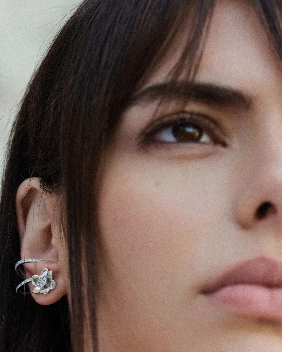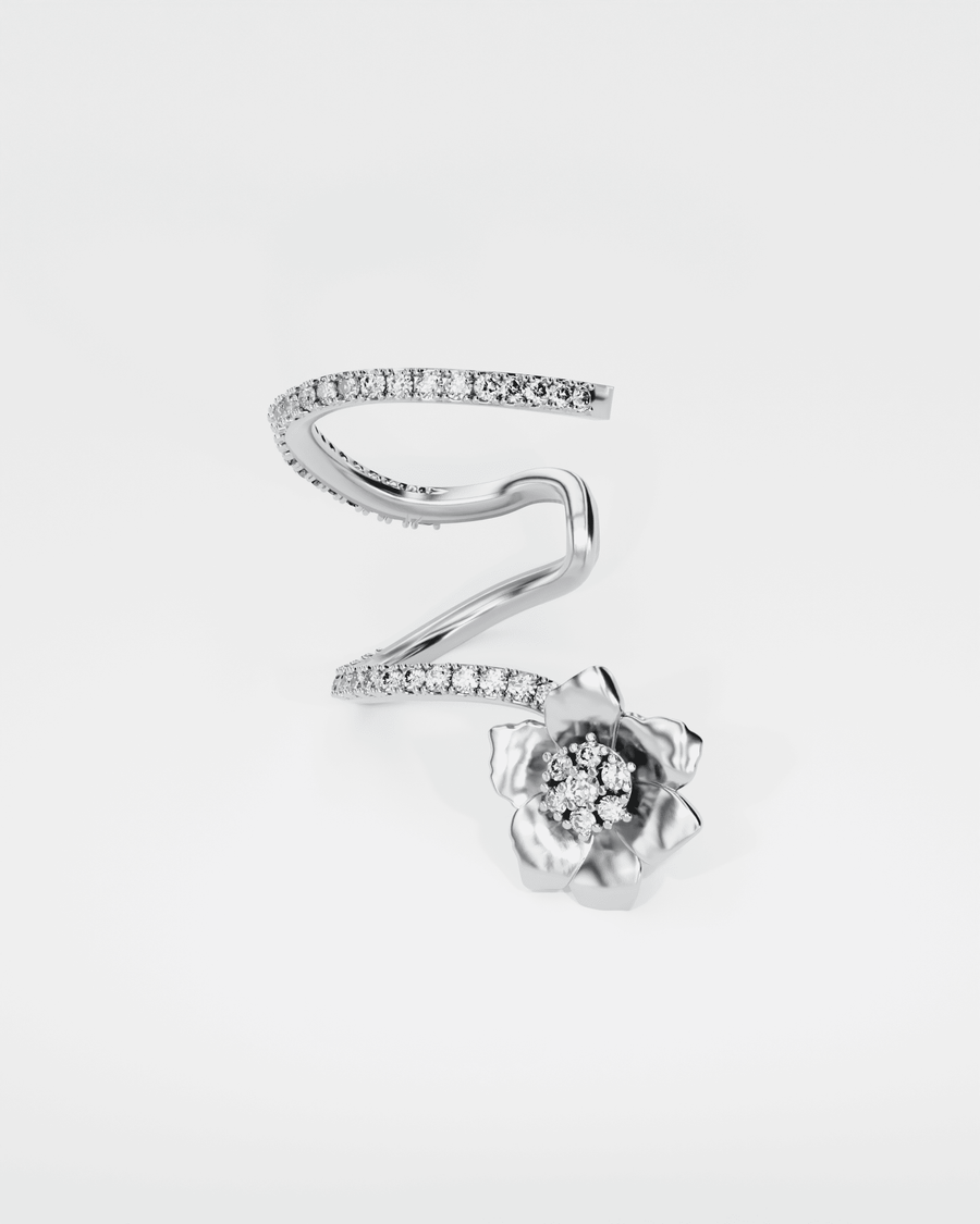 У центрі прикраси— анемона, гірська квітка з Карпат, Альп і Піренеїв, яка розквітає першою після снігу. Анемона — квітка, що символізує раннє пробудження природи і поєднує тендітність з прихованою силою— образ, увічнений у мистецтві XIX століття. Діамантова лінія завершує композицію, повторюючи стрічку, якою прикрашали вінок.