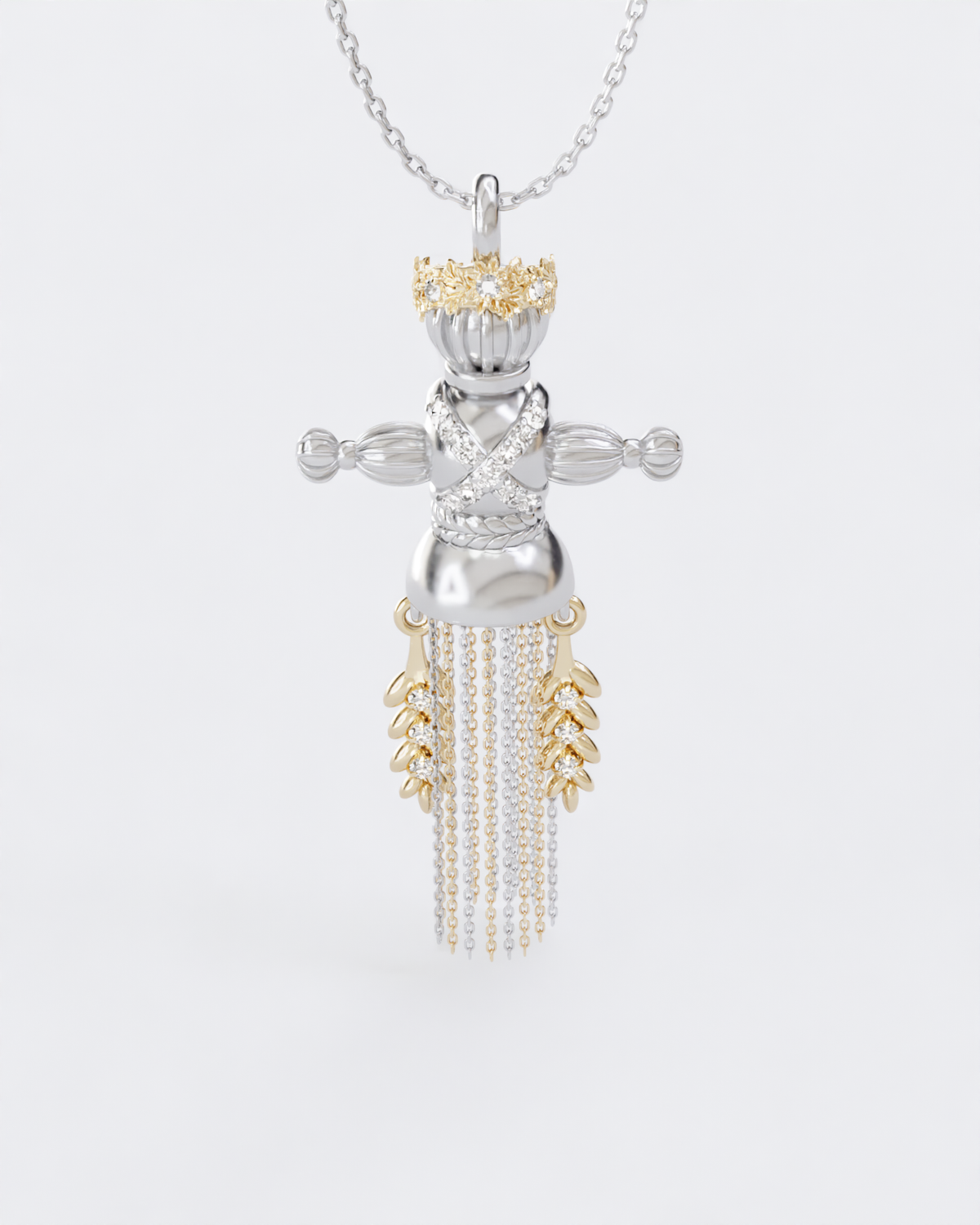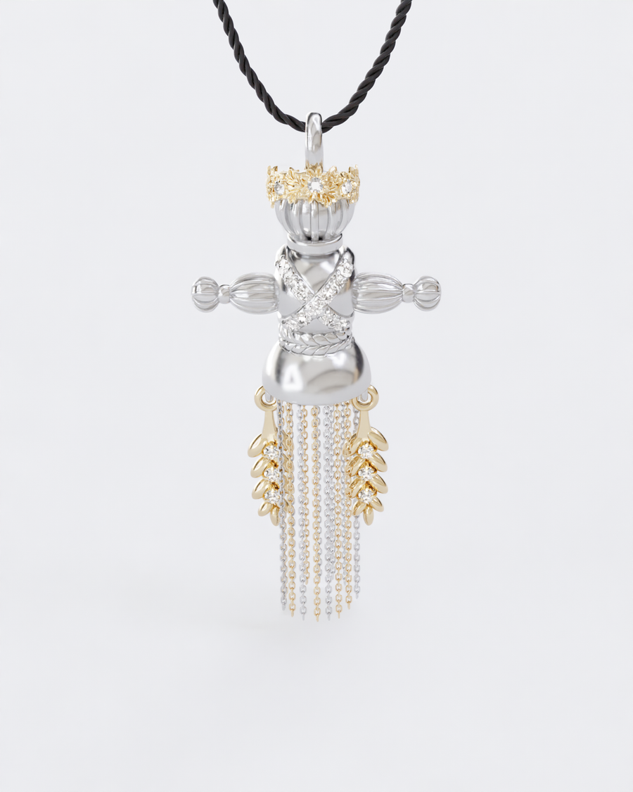 Золота Підвіска Лялька-мотанка Веснянка з діамантамиВідправка поштою 1-3 робочі дні, або самовивіз з наших бутиків у Києві та Львові (після бронювання на сайті або за телефоном)