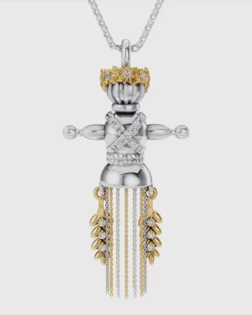 Золота Підвіска Лялька-мотанка Веснянка з діамантами