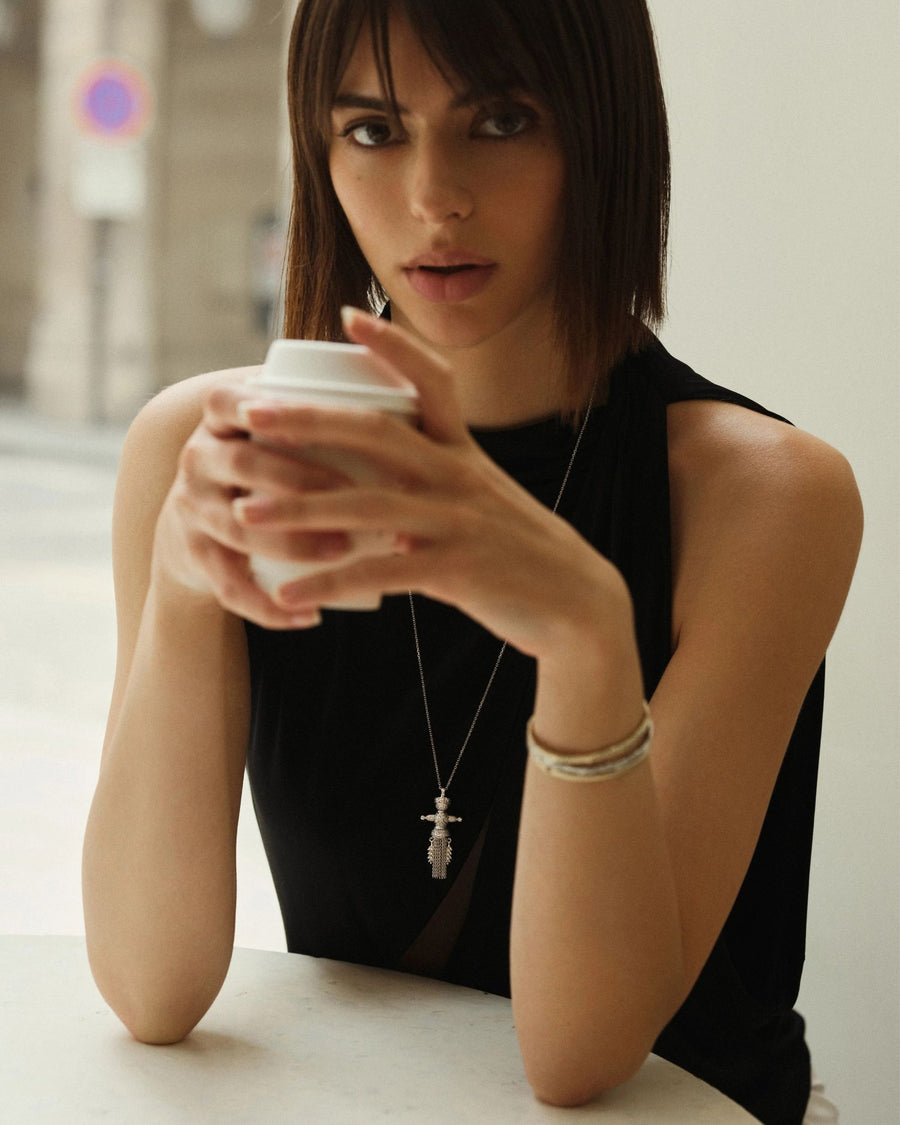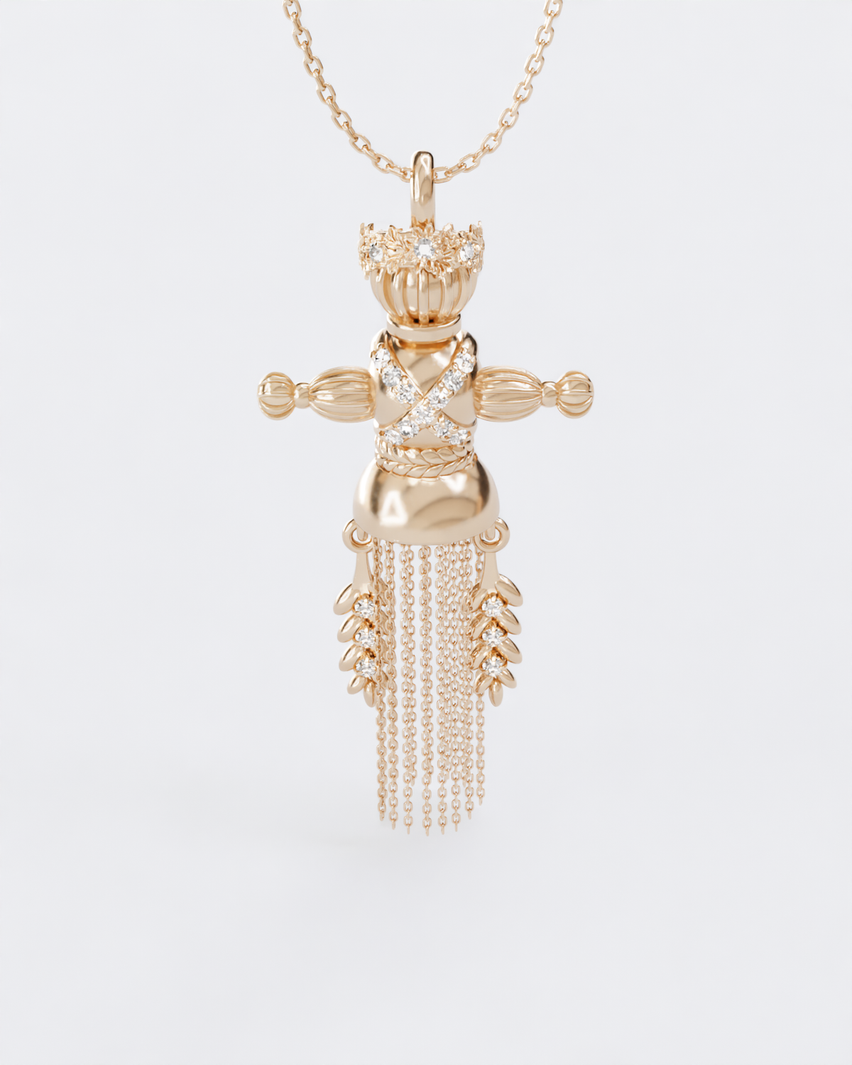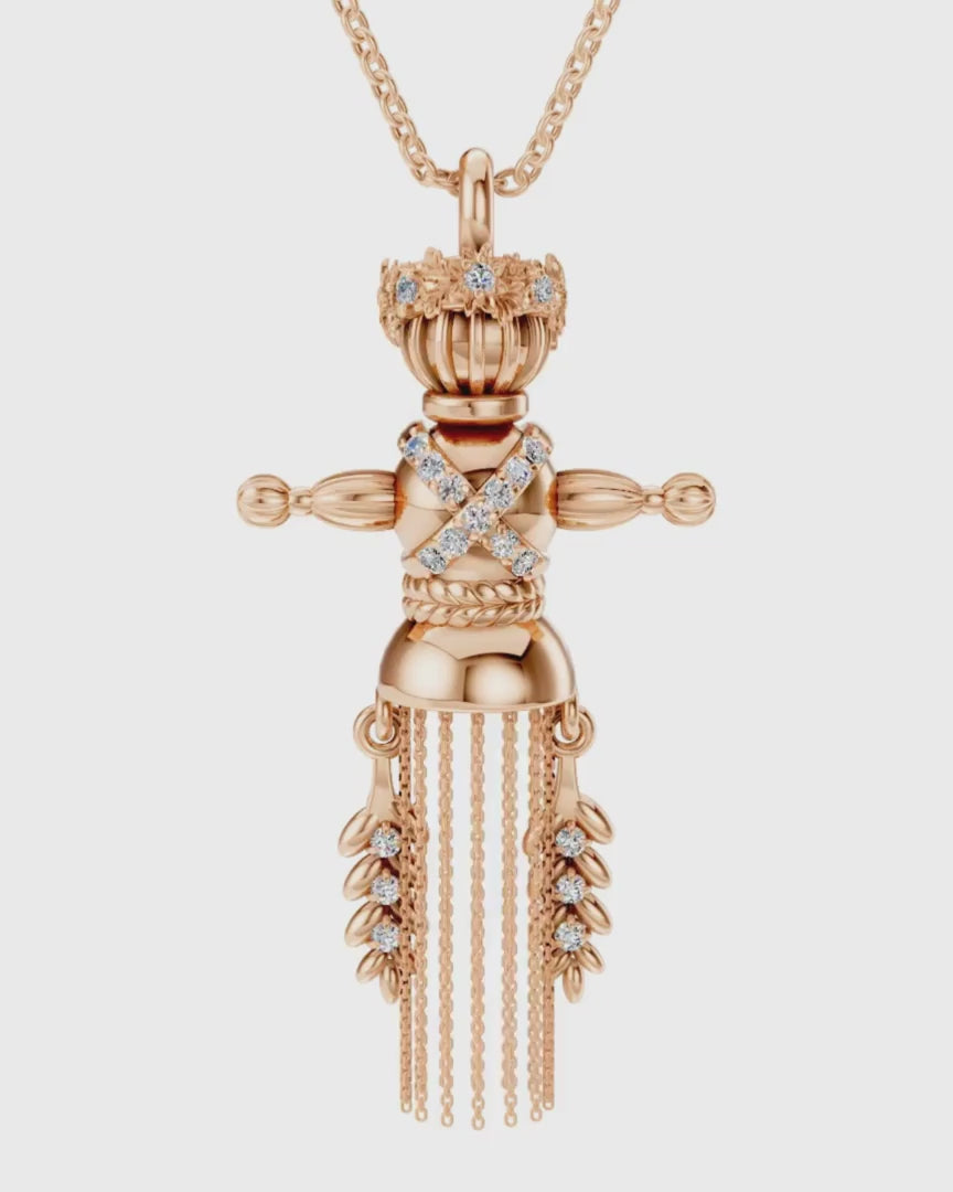 Золота підвіска Лялька-мотанка Веснянка з діамантамиВідправка поштою 1-3 робочі дні, або самовивіз з наших бутиків у Києві та Львові (після бронювання на сайті або за телефоном)