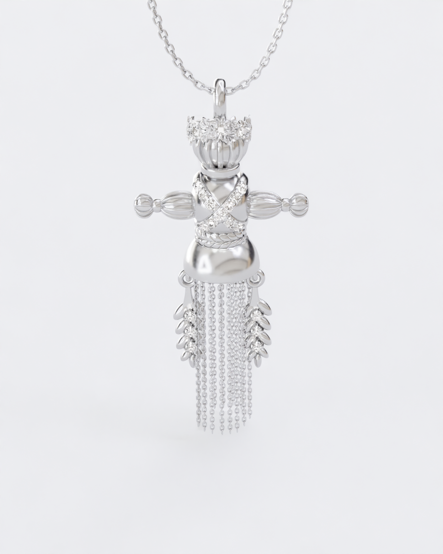 Золота Підвіска Лялька-мотанка Веснянка з діамантами