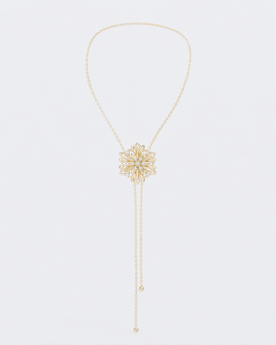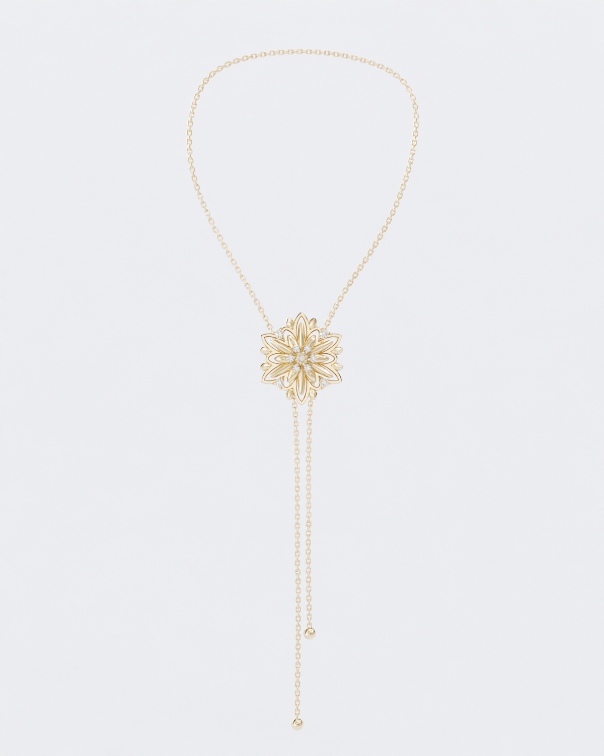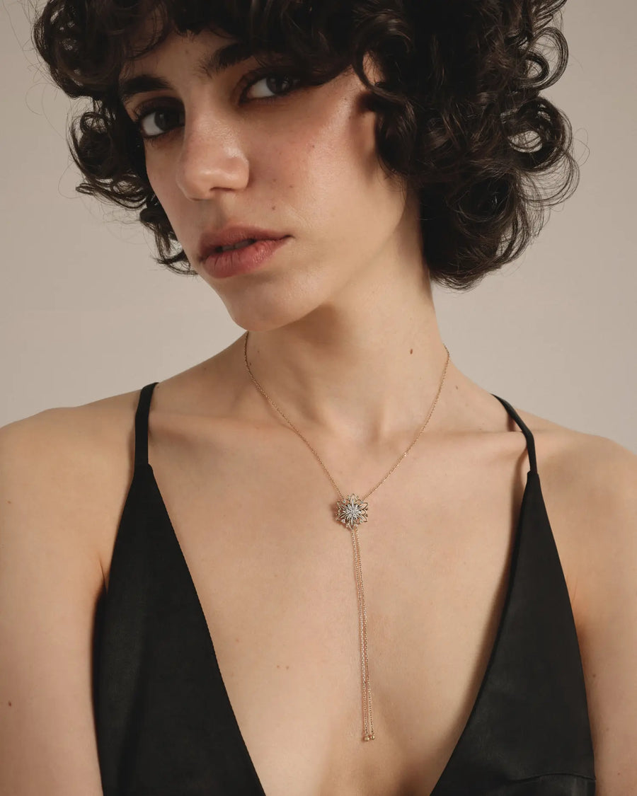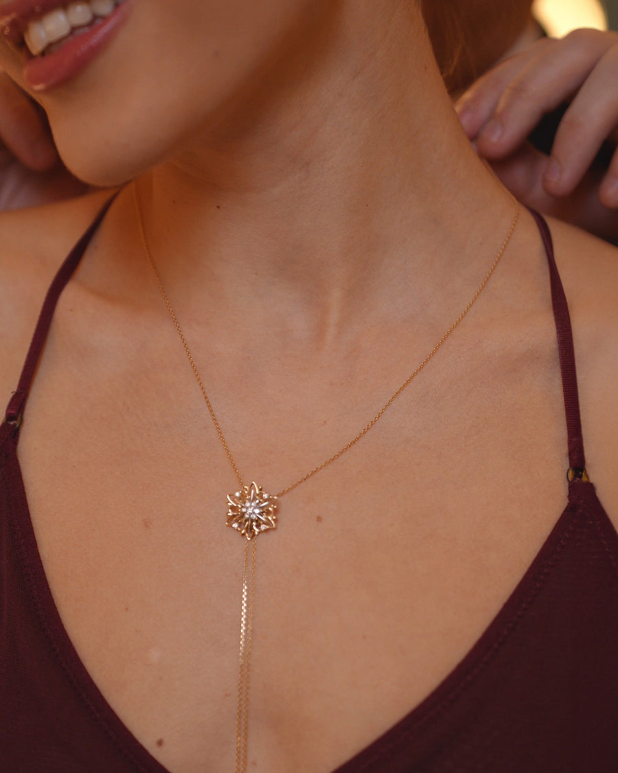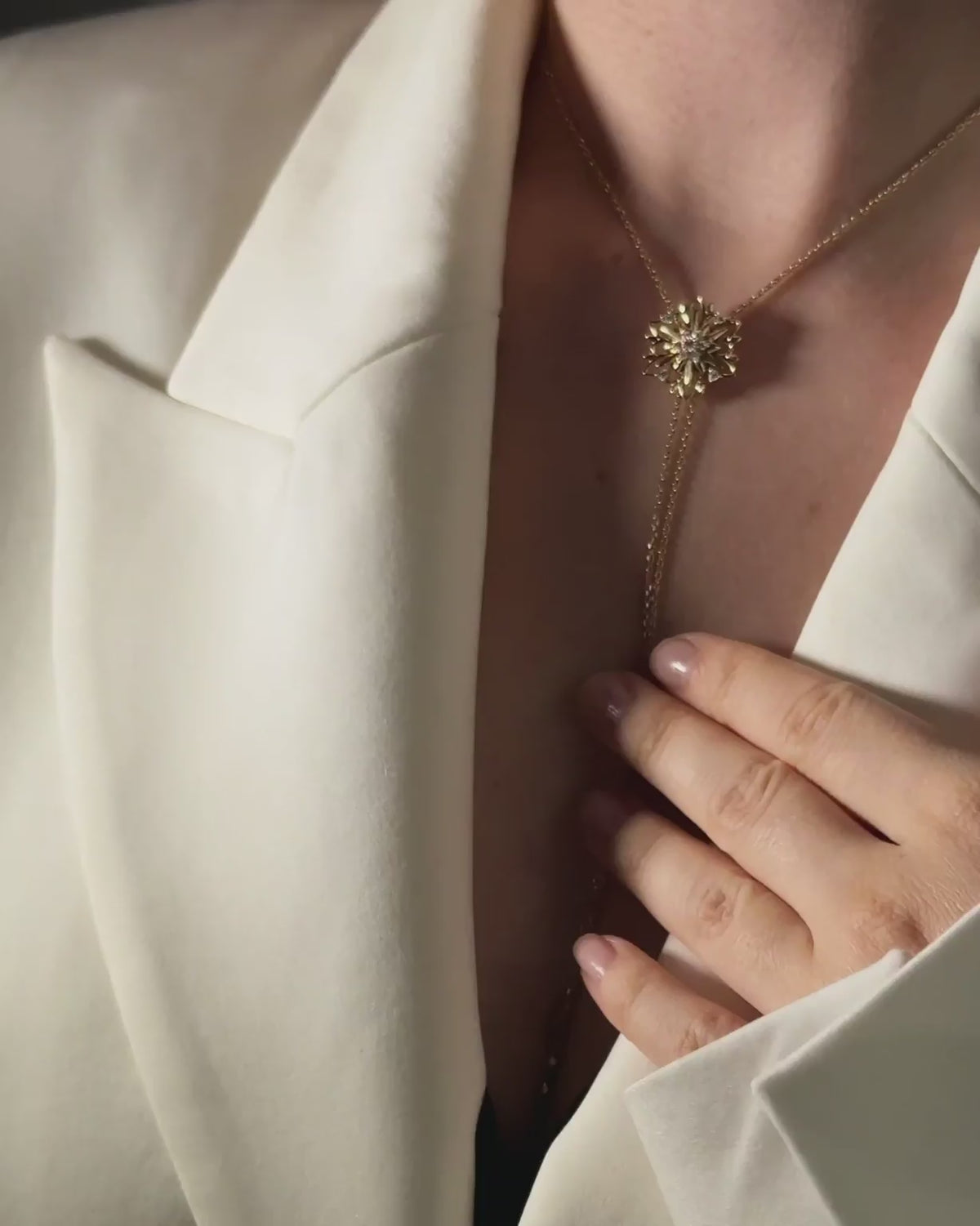 Золоте Кольє - краватка Едельвейс з діамантамиВідправка поштою 1-3 робочі дні, або самовивіз з наших бутиків у Києві та Львові (після бронювання на сайті або за телефоном)