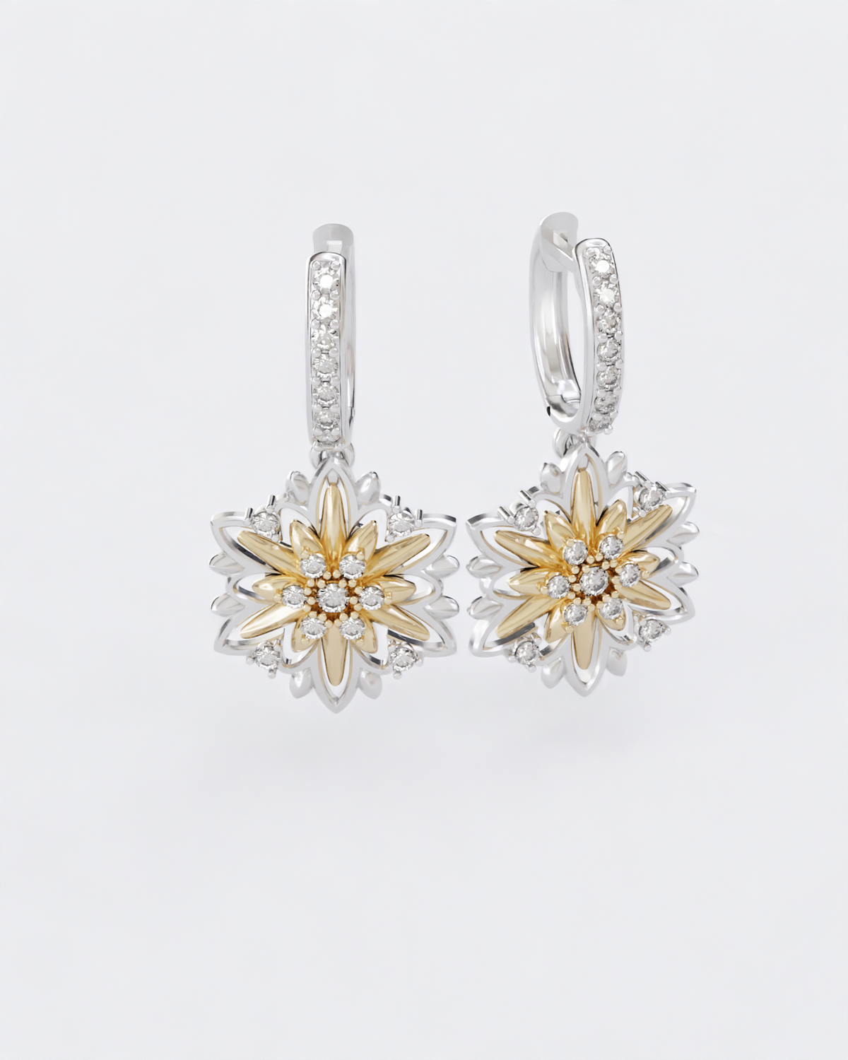 Золоті сережки Едельвейс з діамантами
