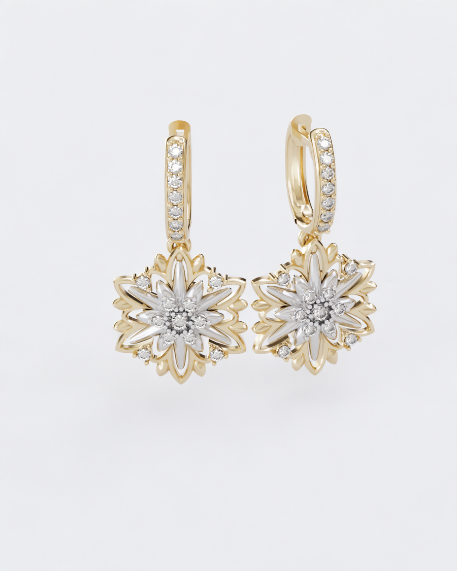 Золоті сережки Едельвейс з діамантамиПід замовлення. Наші ювеліри виготовлять цю прикрасу для вас протягом 2 тижнів