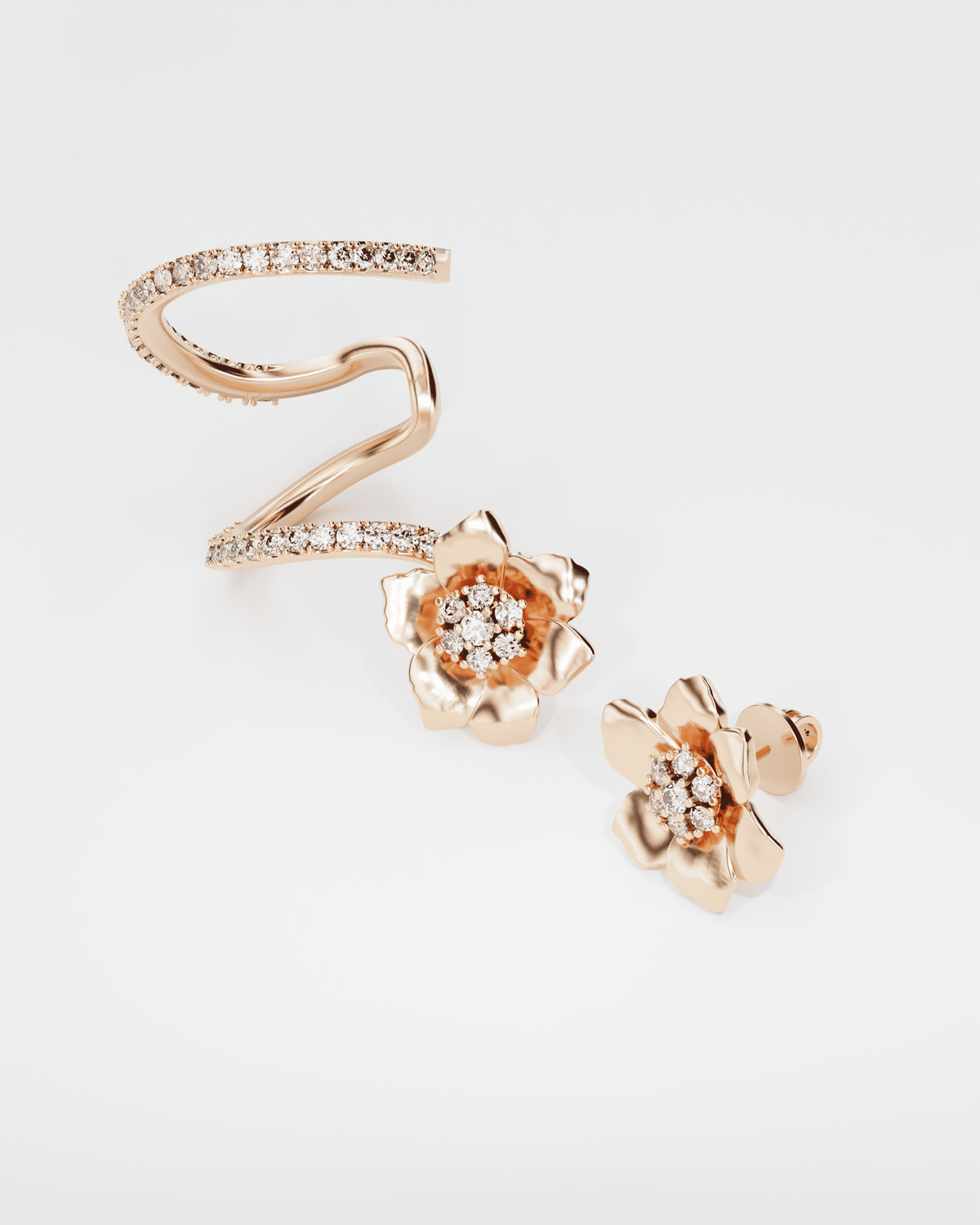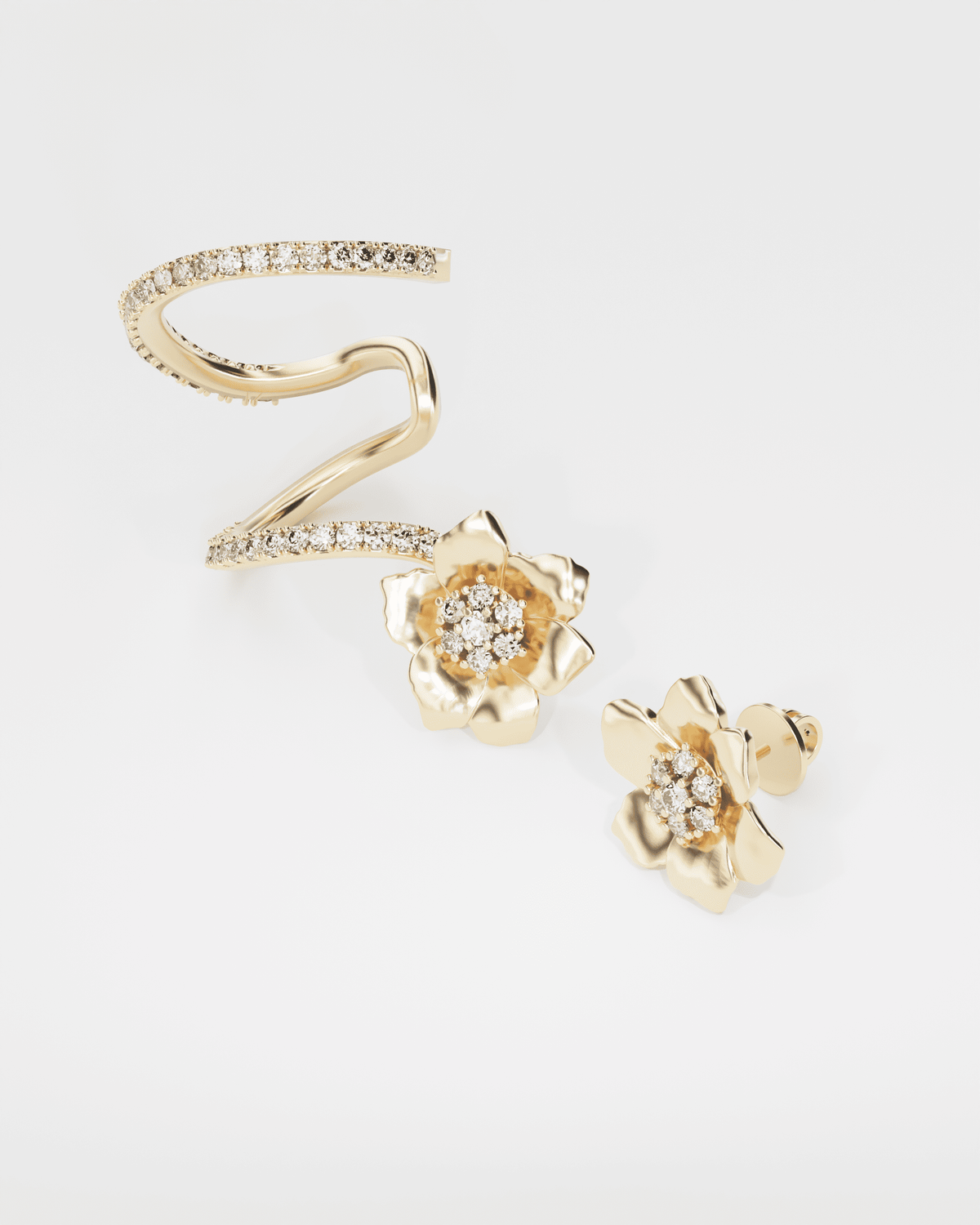 Золота сережка-кафа та пусет АнемонаПрикраса не в наявності. Дозвольте нашим ювелірам виготовити цю прикрасу для вас. Оформіть передзамовлення і отримайте її найближчим часом.