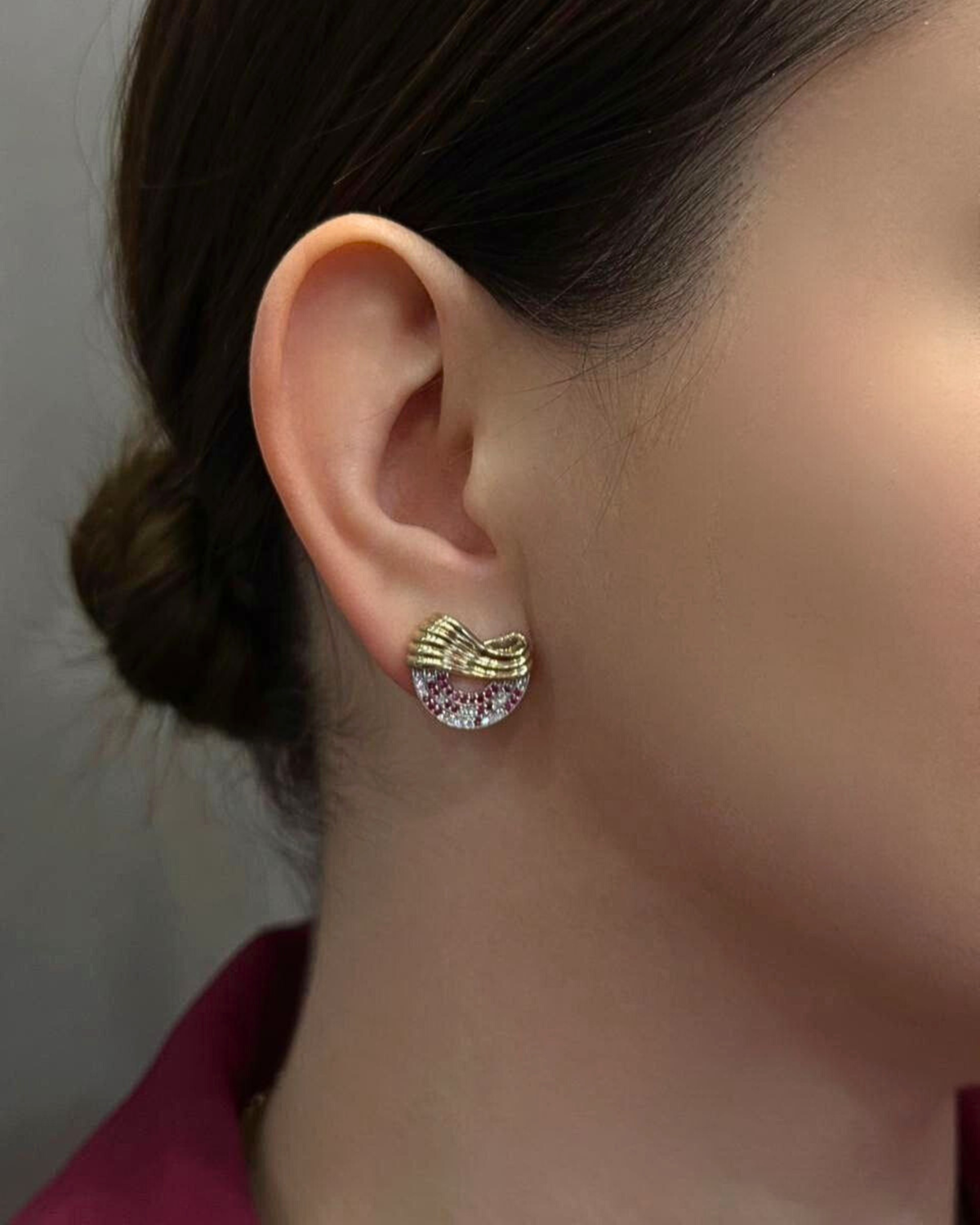 Колекція Марія присвячена Марії Заньковецькій - знаковій постаті українського театру 19-20 століття. Колекція фіксує саму мить її появи на сцені - момент, коли вона стоїть перед залом, а глядачі зібралися, щоб побачити й почути її. Форма прикрас відтворює композицію залу Львівського Театру Марії Заньковецької - його просторову логіку та сценічну орієнтацію. У формі виробів закладено мотив театральних завіс, з-за яких починався кожен її вихід на сцену. Каміння викладено напівколом, повторюючи форму театральних рядів. Діаманти та рубіни розміщені за принципом фактичної схеми зали: рубіни у «першому ряду» символізують найближчих до неї людей, далі червоні акценти поступово розходяться, повторюючи розміщення глядачів у залі. Прикраси виконані із золота 585 проби, інкрустована діамантами і рубінами.