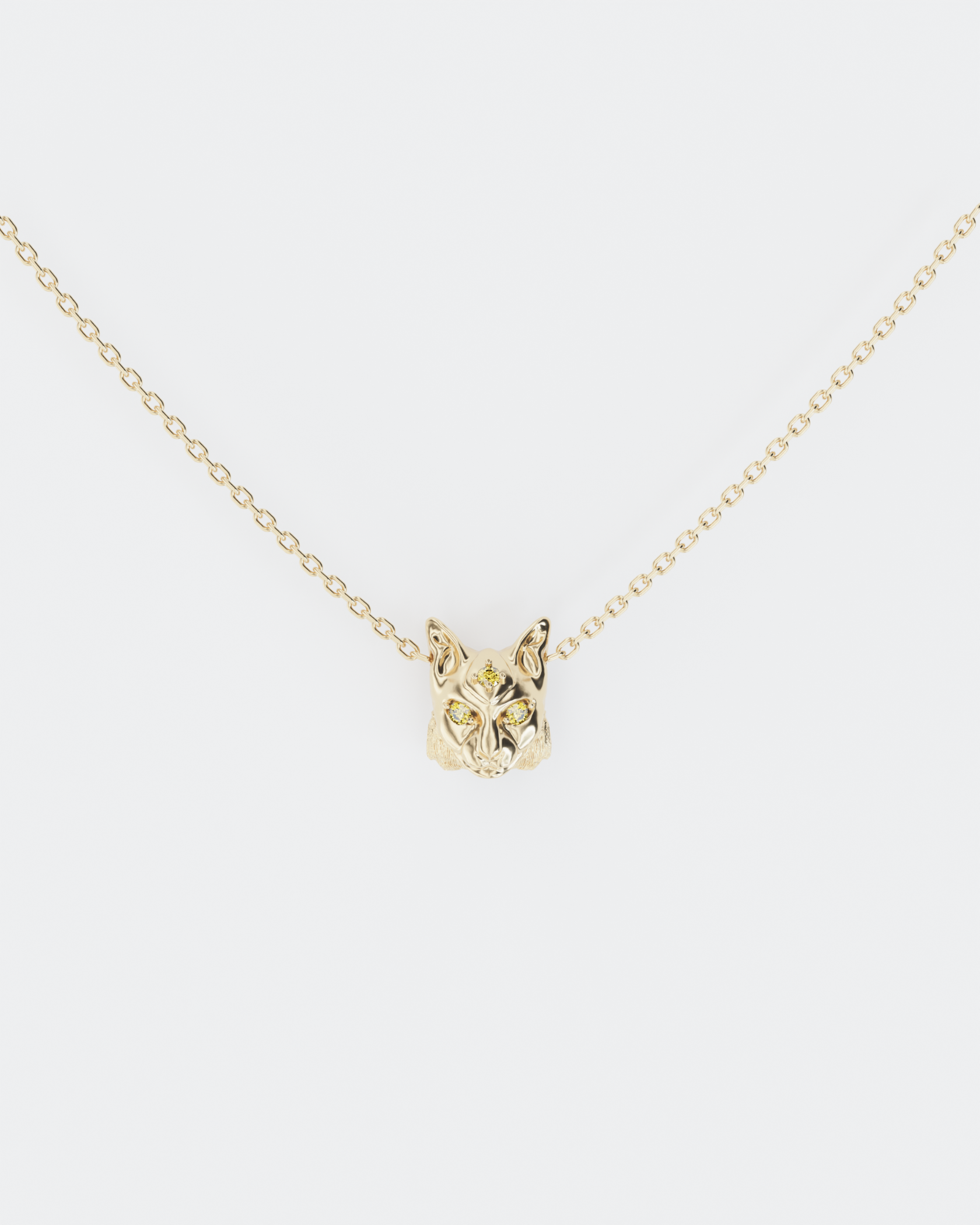 Ці прикраси допомагають відчути глибокий зв'язок з природою та підкреслити внутрішню силу й витривалість. Інкрустація жовтими діамантами відтворює виразні очі рисі, збагачуючи образ особливим магнетизмом.
