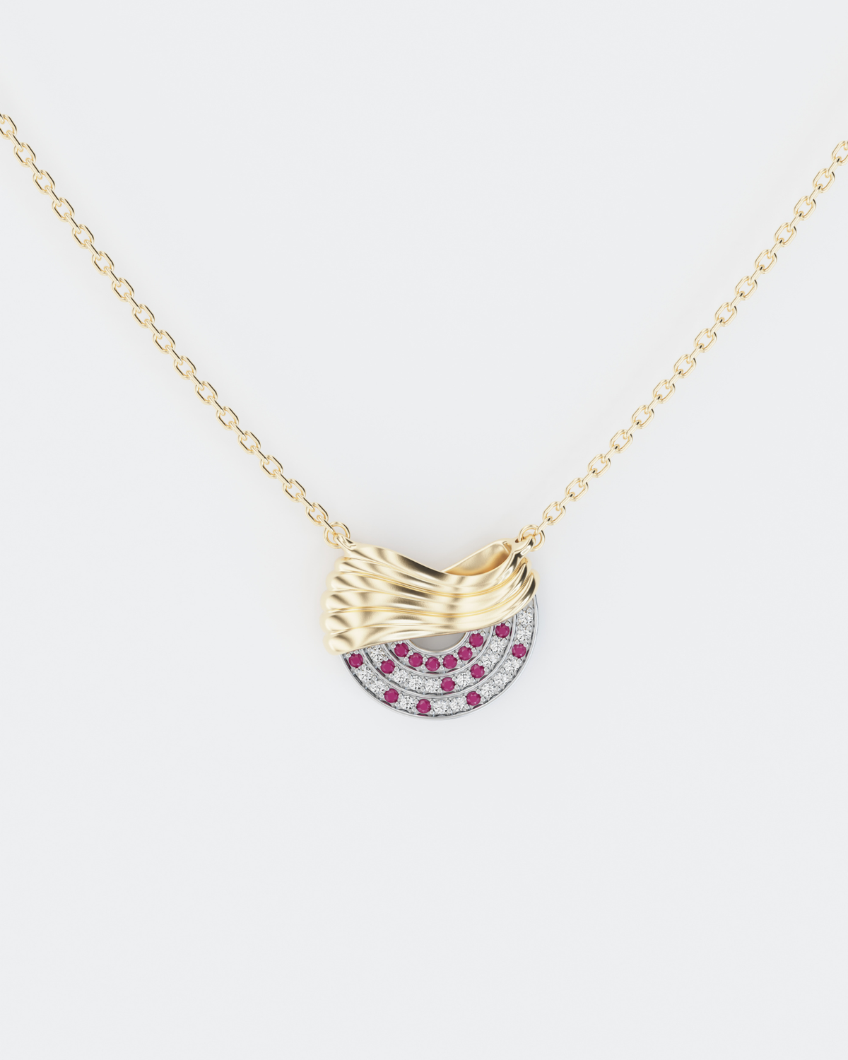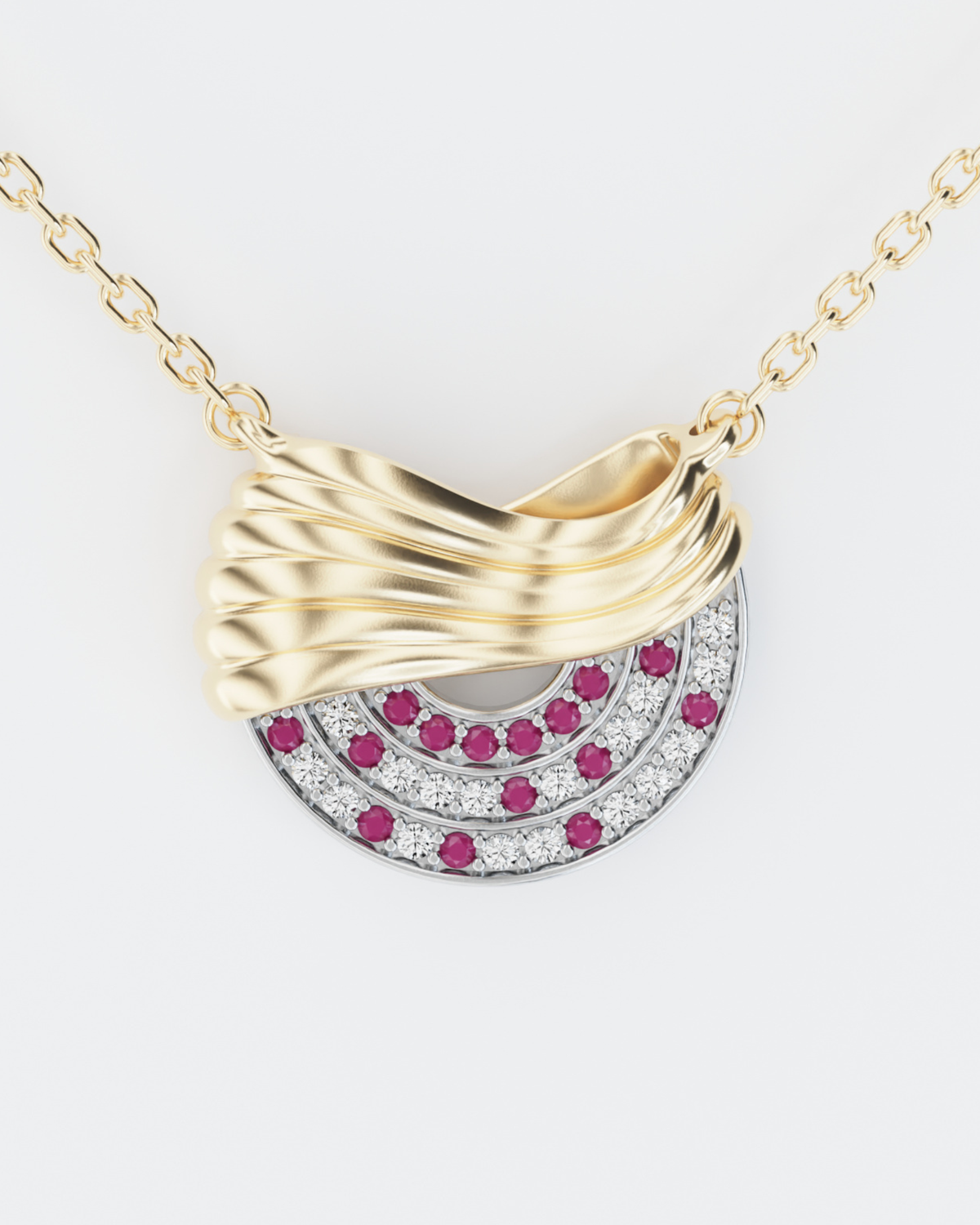 Колекція Марія присвячена Марії Заньковецькій - знаковій постаті українського театру 19-20 століття. Колекція фіксує саму мить її появи на сцені - момент, коли вона стоїть перед залом, а глядачі зібралися, щоб побачити й почути її. Форма прикрас відтворює композицію залу Львівського Театру Марії Заньковецької - його просторову логіку та сценічну орієнтацію. У формі виробів закладено мотив театральних завіс, з-за яких починався кожен її вихід на сцену. Каміння викладено напівколом, повторюючи форму театральних рядів. Діаманти та рубіни розміщені за принципом фактичної схеми зали: рубіни у «першому ряду» символізують найближчих до неї людей, далі червоні акценти поступово розходяться, повторюючи розміщення глядачів у залі. Прикраси виконані із золота 585 проби, інкрустована діамантами і рубінами.