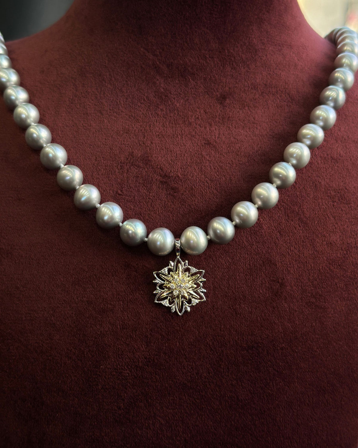 Кольє Едельвейс з діамантами та перламиВідправка поштою 1-3 робочі дні, або самовивіз з наших бутиків (після бронювання на сайті або за телефоном)