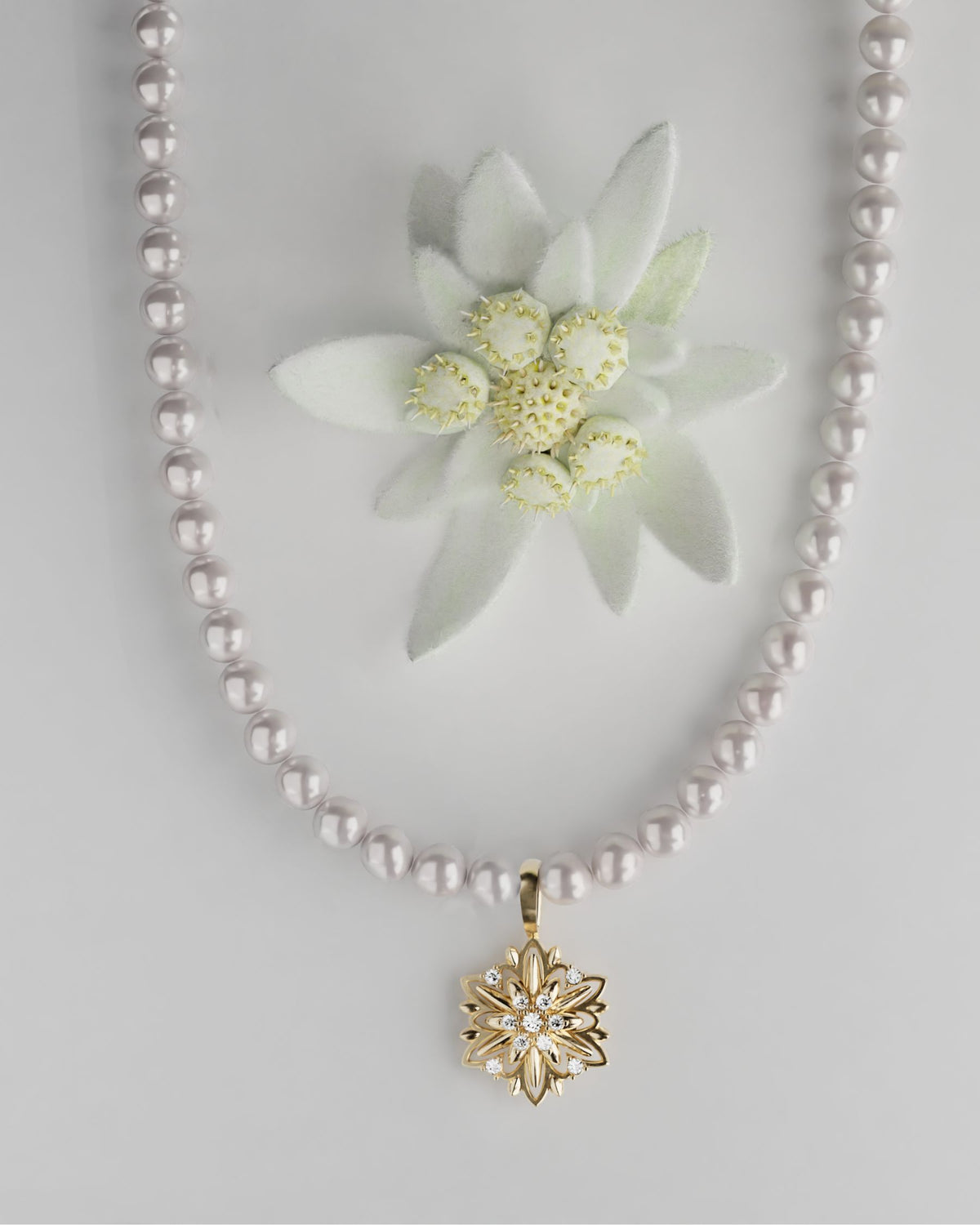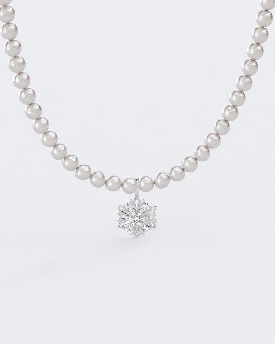 Довге кольє Едельвейс з діамантами та перлами