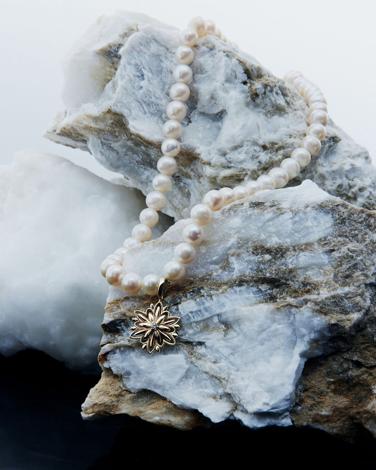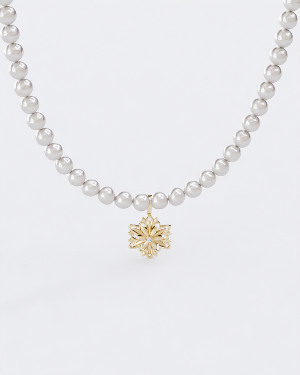 Кольє Едельвейс з натуральними прісноводними перлами білого або кремового кольору. Якість перлів ААА (мають невеликі природні недоліки, що підкреслюють індивідуальність та натуральність перлів).