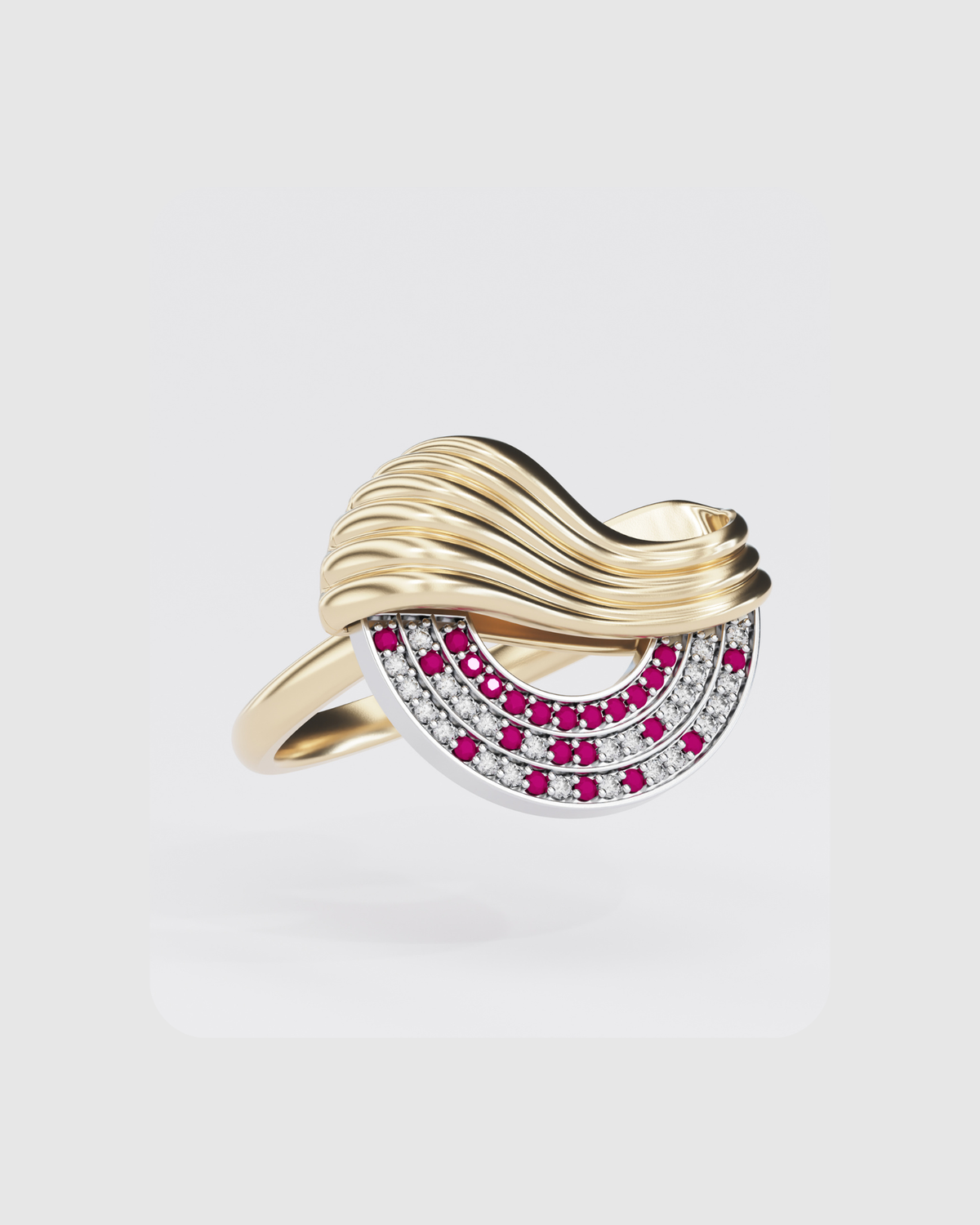 Колекція Марія присвячена Марії Заньковецькій - знаковій постаті українського театру 19-20 століття. Колекція фіксує саму мить її появи на сцені - момент, коли вона стоїть перед залом, а глядачі зібралися, щоб побачити й почути її. Форма прикрас відтворює композицію залу Львівського Театру Марії Заньковецької - його просторову логіку та сценічну орієнтацію. У формі виробів закладено мотив театральних завіс, з-за яких починався кожен її вихід на сцену. Каміння викладено напівколом, повторюючи форму театральних рядів. Діаманти та рубіни розміщені за принципом фактичної схеми зали: рубіни у «першому ряду» символізують найближчих до неї людей, далі червоні акценти поступово розходяться, повторюючи розміщення глядачів у залі. Прикраси виконані із золота 585 проби, інкрустована діамантами і рубінами.