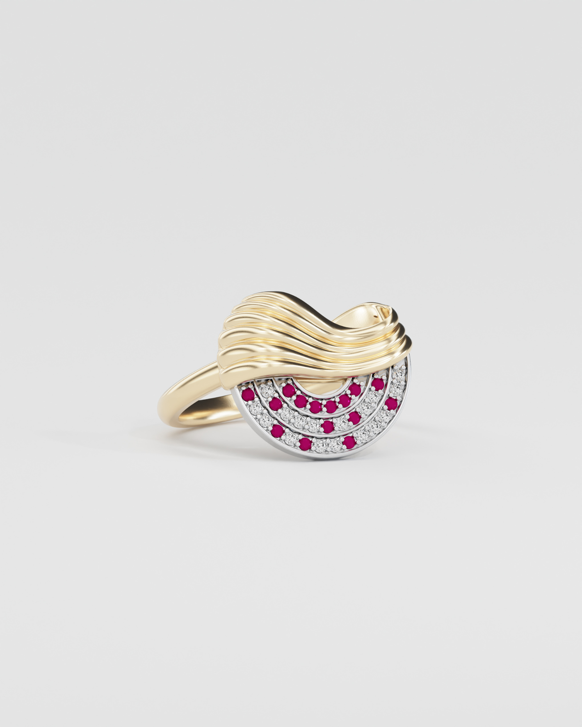 Колекція Марія присвячена Марії Заньковецькій - знаковій постаті українського театру 19-20 століття. Колекція фіксує саму мить її появи на сцені - момент, коли вона стоїть перед залом, а глядачі зібралися, щоб побачити й почути її. Форма прикрас відтворює композицію залу Львівського Театру Марії Заньковецької - його просторову логіку та сценічну орієнтацію. У формі виробів закладено мотив театральних завіс, з-за яких починався кожен її вихід на сцену. Каміння викладено напівколом, повторюючи форму театральних рядів. Діаманти та рубіни розміщені за принципом фактичної схеми зали: рубіни у «першому ряду» символізують найближчих до неї людей, далі червоні акценти поступово розходяться, повторюючи розміщення глядачів у залі. Прикраси виконані із золота 585 проби, інкрустована діамантами і рубінами.