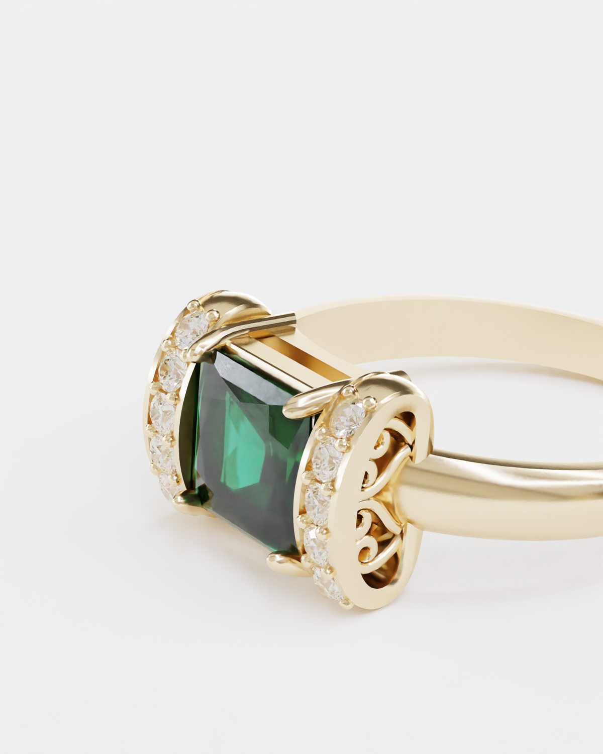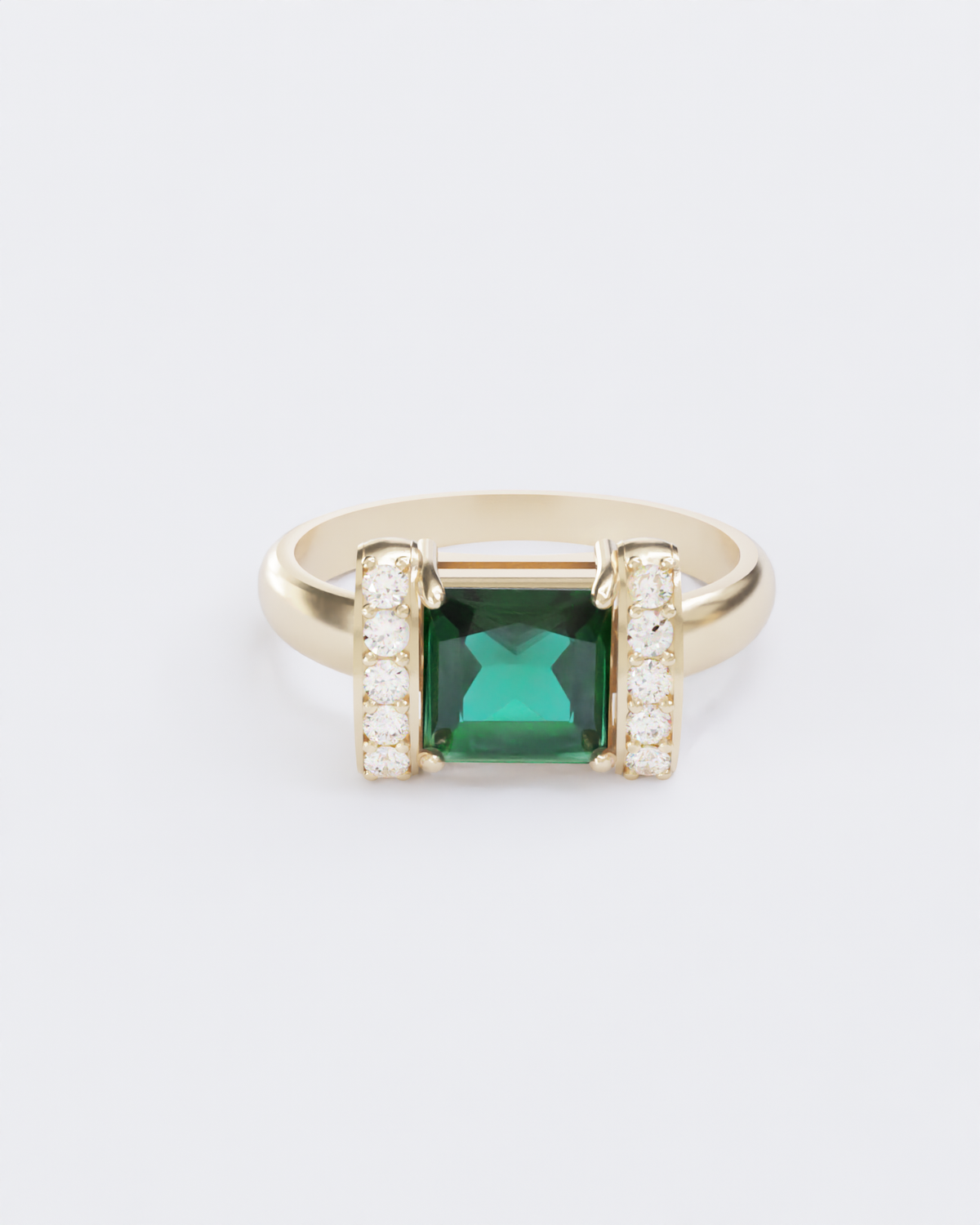Бічні сторони каблучки інкрустовані лабораторними діамантами, які підсилюють блиск цього унікального виробу.