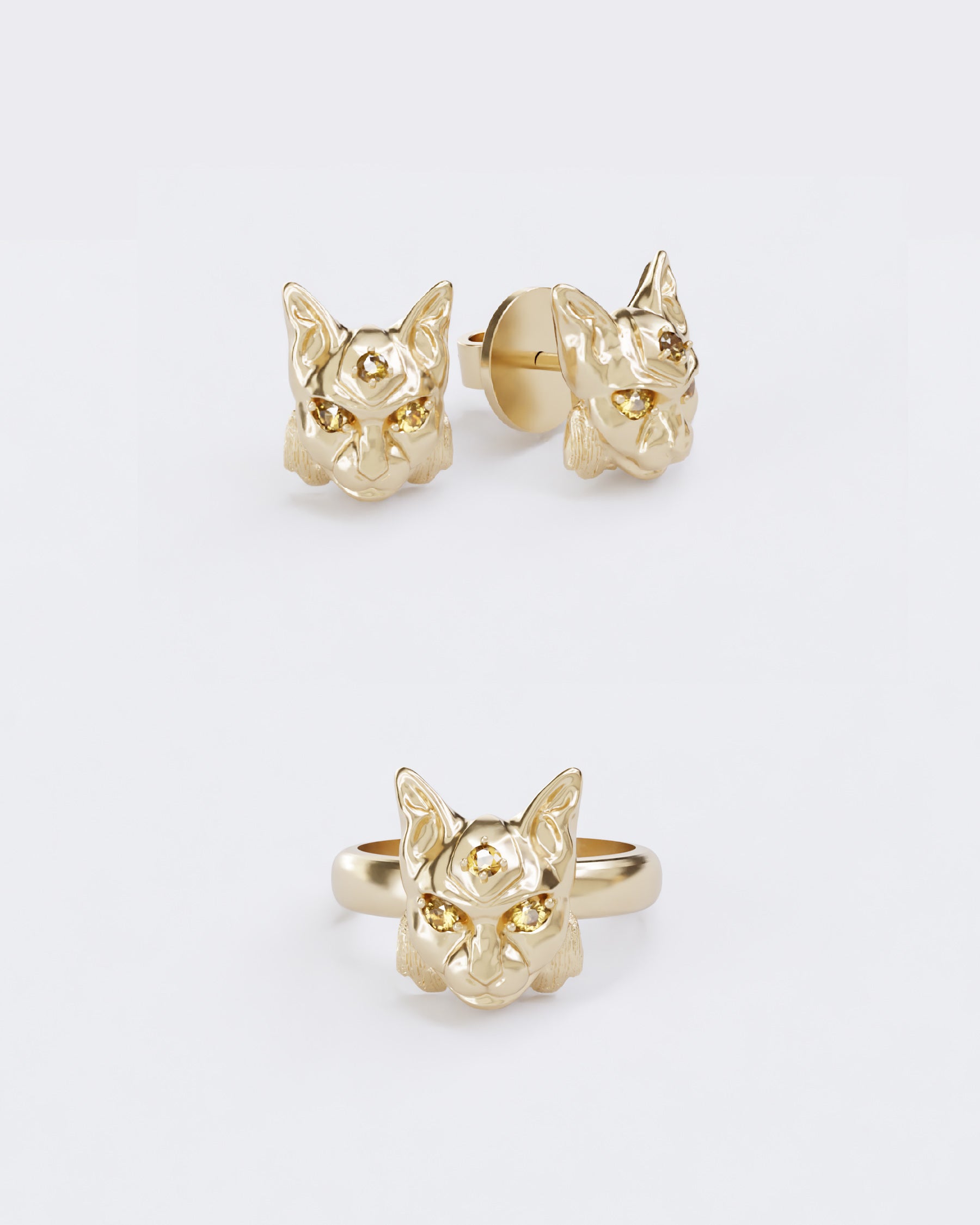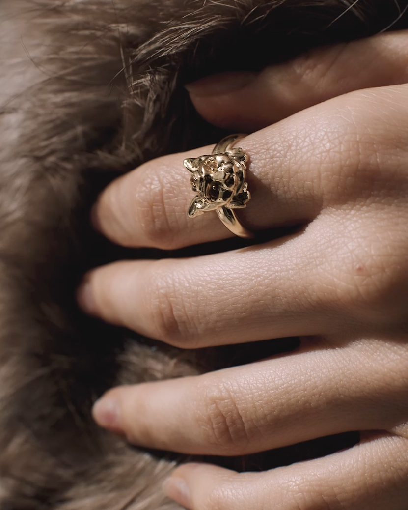 Ці прикраси допомагають відчути глибокий зв'язок з природою та підкреслити внутрішню силу й витривалість. Інкрустація жовтими діамантами відтворює виразні очі рисі, збагачуючи образ особливим магнетизмом.