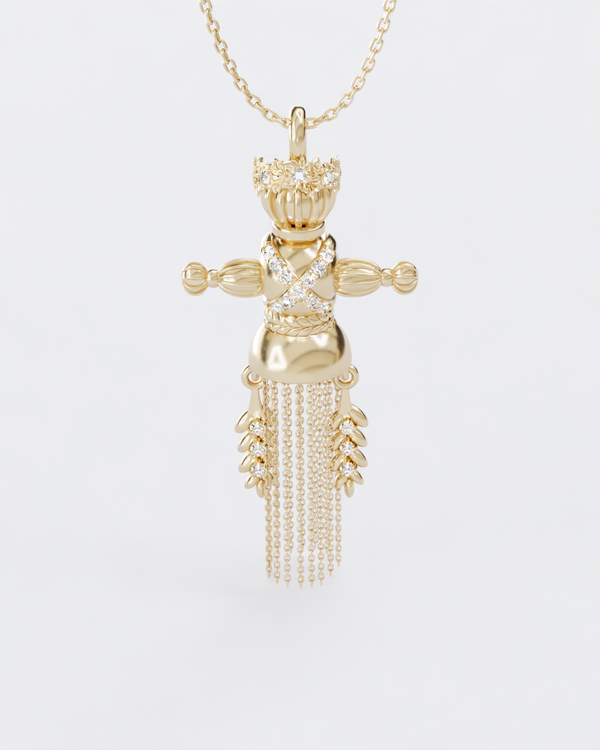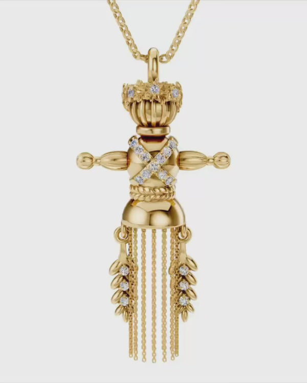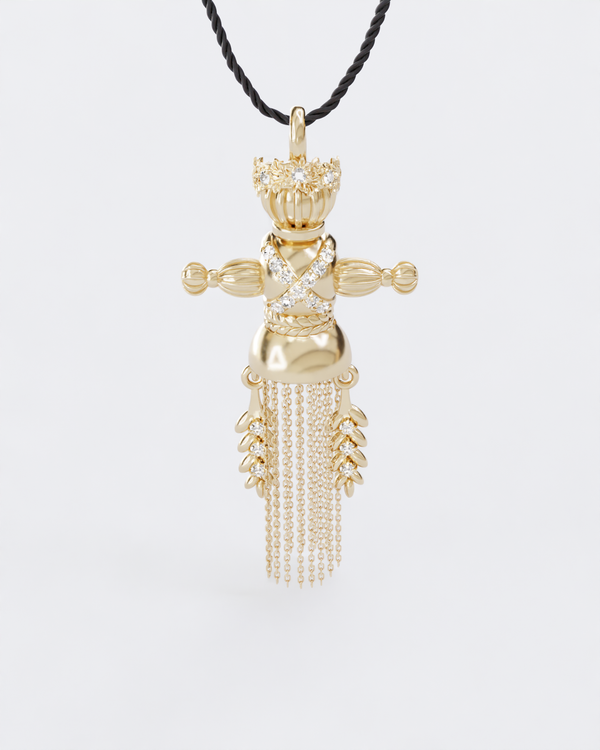 Золота Підвіска Лялька-мотанка Веснянка з діамантами