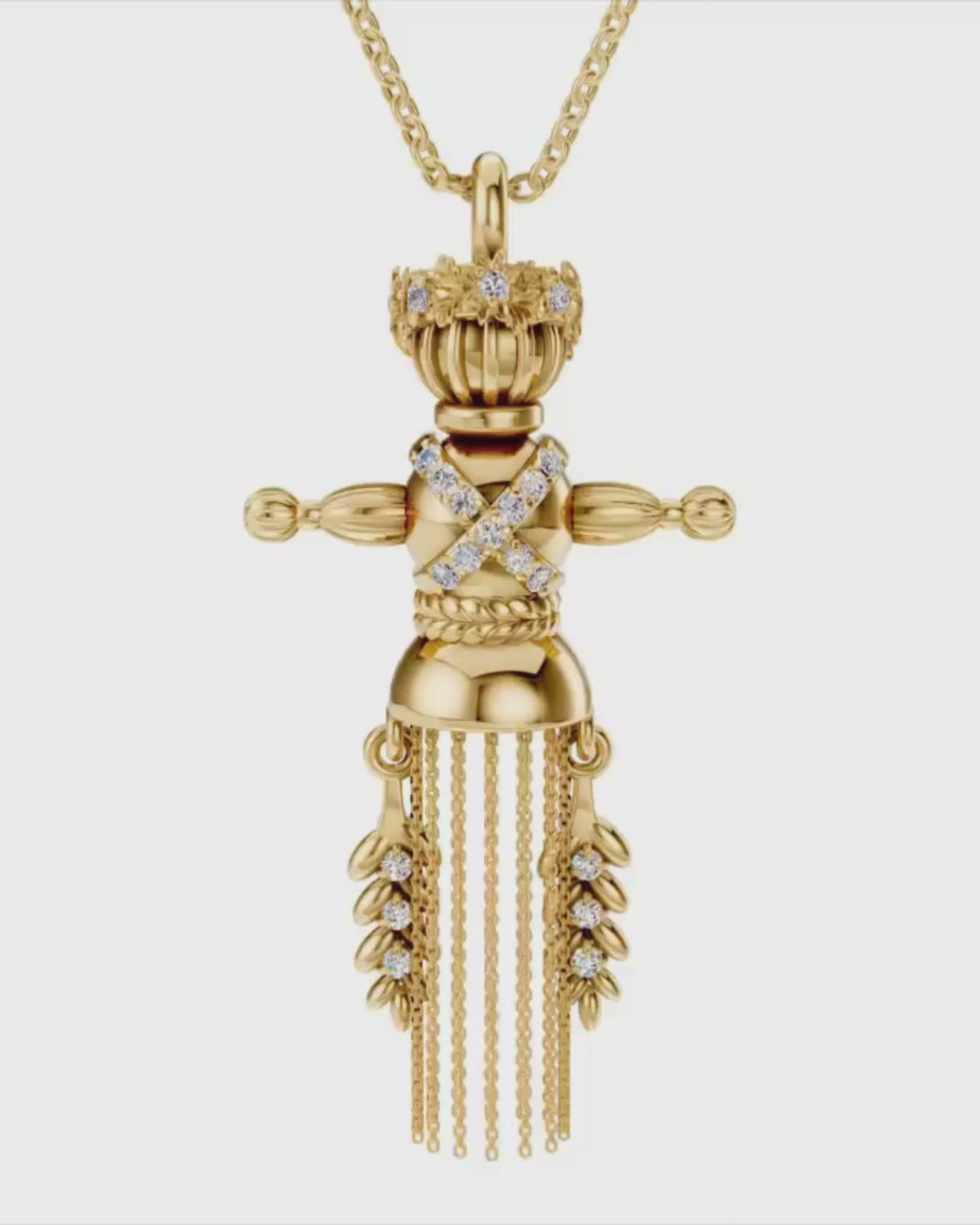 Золота Підвіска Лялька-мотанка Веснянка з діамантамиВідправка поштою 1-3 робочі дні, або самовивіз з наших бутиків у Києві та Львові (після бронювання на сайті або за телефоном)