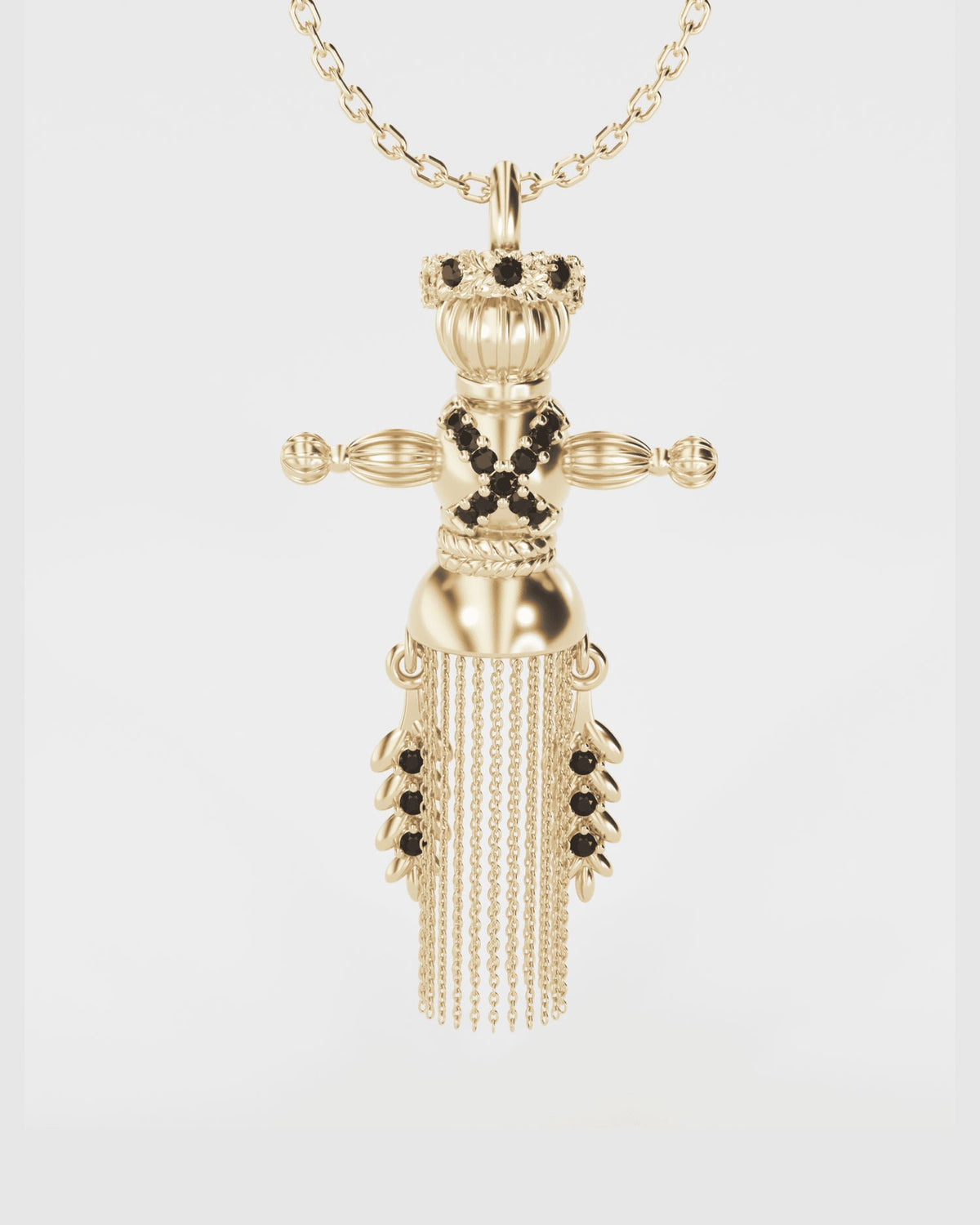 Золота підвіска Лялька-мотанка Веснянка з чорними діамантамиВідправка поштою 1-3 робочі дні, або самовивіз з наших бутиків (після бронювання на сайті або за телефоном)