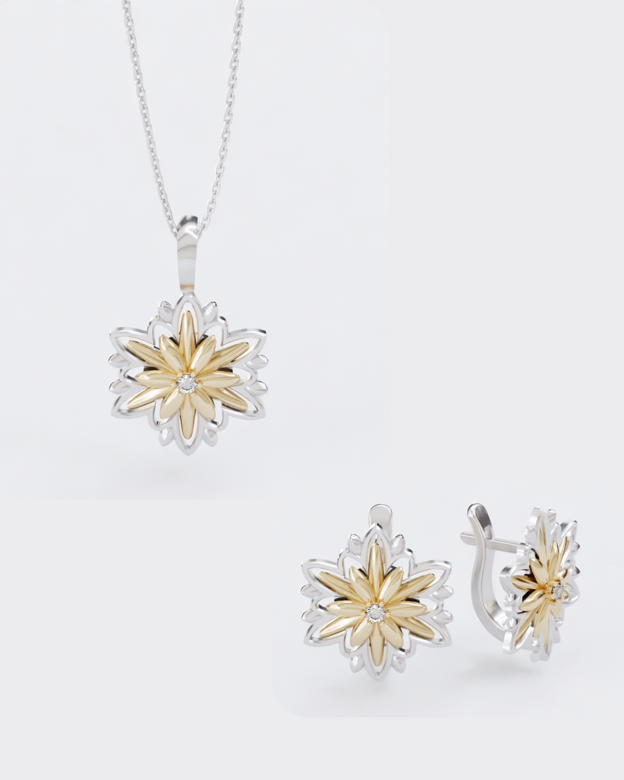 Золотий набір ЕдельвейсПід замовлення. Наші ювеліри виготовлять цю прикрасу для вас протягом 3-4 тижнів