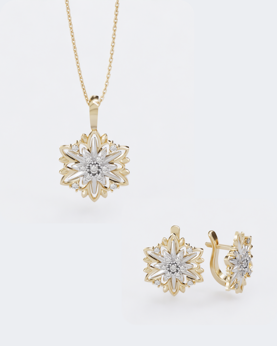 Золотий набір Едельвейс з діамантамиПід замовлення. Наші ювеліри виготовлять цю прикрасу для вас протягом 3-4 тижнів