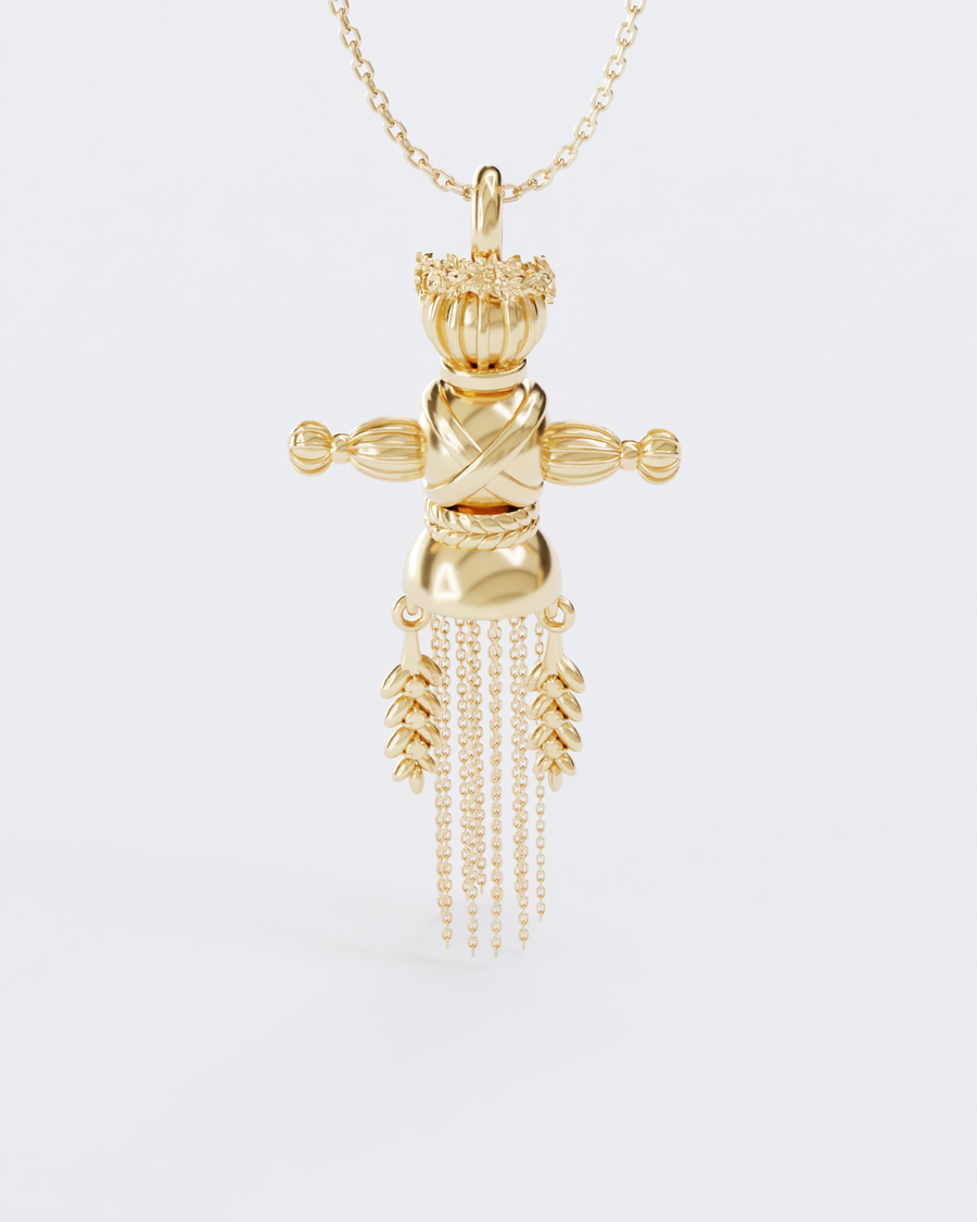 Підвіска складається з 18 деталей, кожна із яких з’єднується вручну. Голова ляльки прикрашена вінком - обов’язковим атрибутом весняних та літніх обрядових свят та ритуалів.Країна виробник: Україна. Виробництво: всі прикраси виготовляються на власному ювелірному виробництві в Києві . Кожен виріб виготовлено вручну професійними ювелірами. Отримайте прикрасу найшвидше! Замовте її зараз!