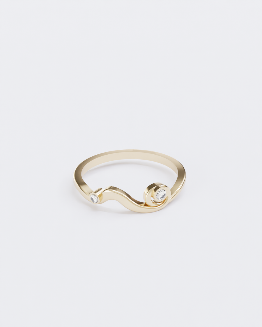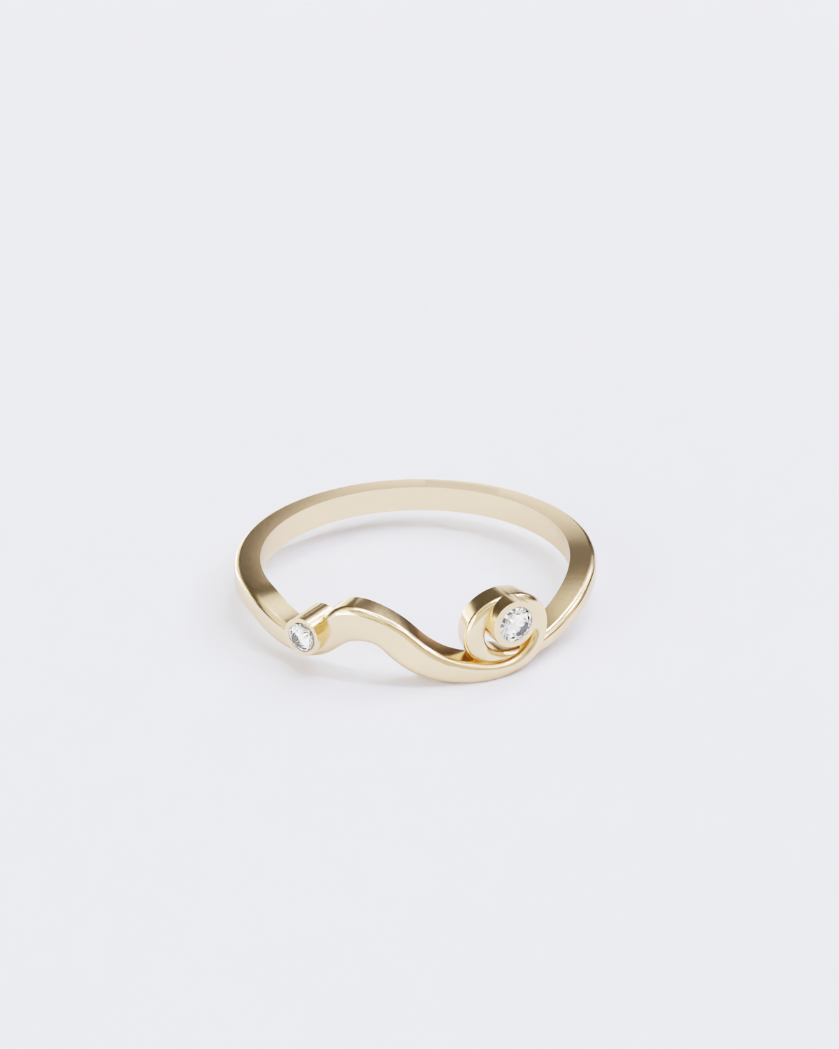 Каблучка “Спіраль часу” – це витончений символ безмежної краси та елегантності. Виготовлена з золота 585 проби і інкрустована діамантами діаметром 1,5 та 2 мм, які можуть бути природніми або вирощеними в лабораторії. Ця каблучка ідеально виражає символ безкінечності завдяки своїм спіральним елементам, і вдало поєднує у собі класичний дизайн і сучасний підхід до ювелірного мистецтва.