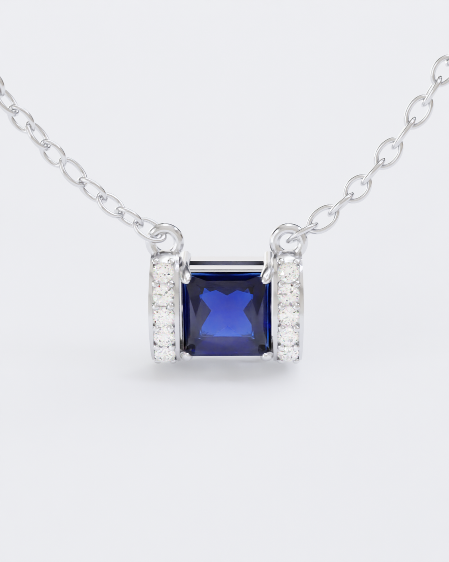 У центрі підвіски вирощений сапфір, який сяє яскравим темно-синім, насиченим кольором.