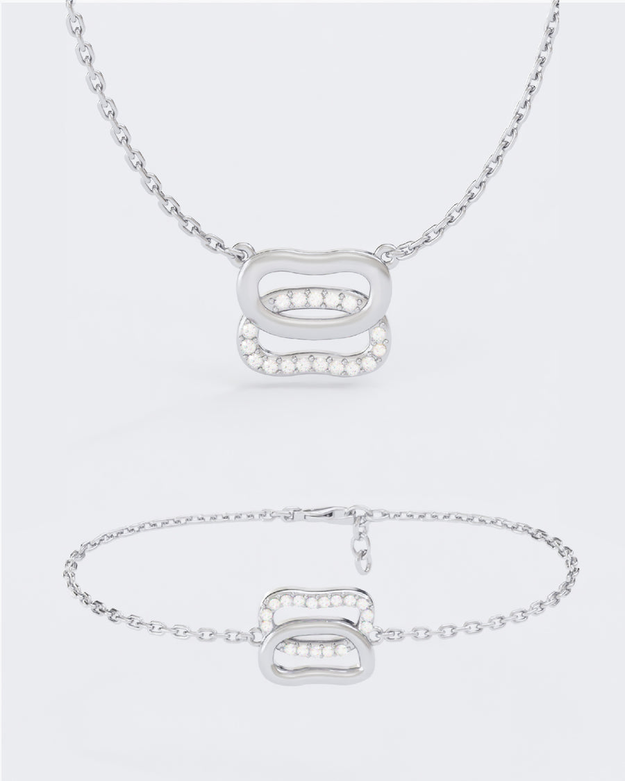 Колекція виконана у жовтому, білому та рожевому золоті, оздобленому діамантовим напівпаве, яке створює витончену гру світла й блиск діамантів. У лінійці представлені підвіски, пусети, каблучки та браслети, розроблені для ідеального поєднання у багатошарових композиціях.