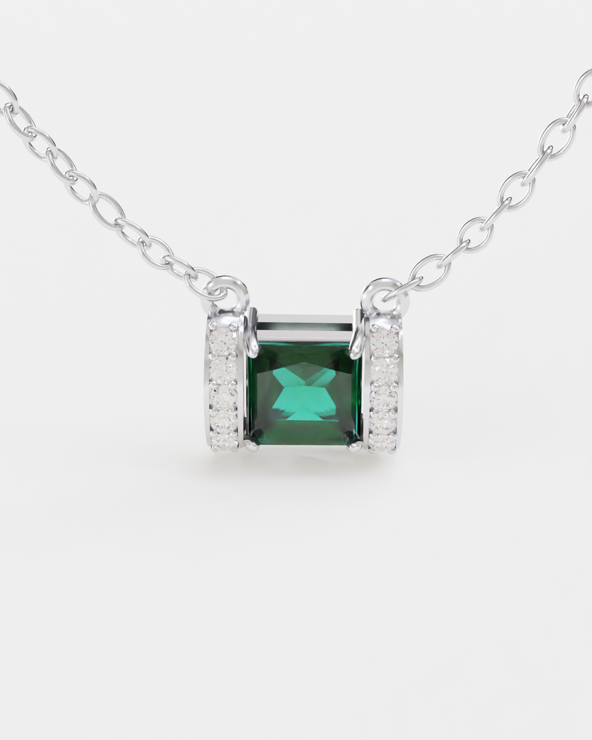 У центрі підвіски вирощений смарагд, який сяє насиченим темно-зеленим кольором.