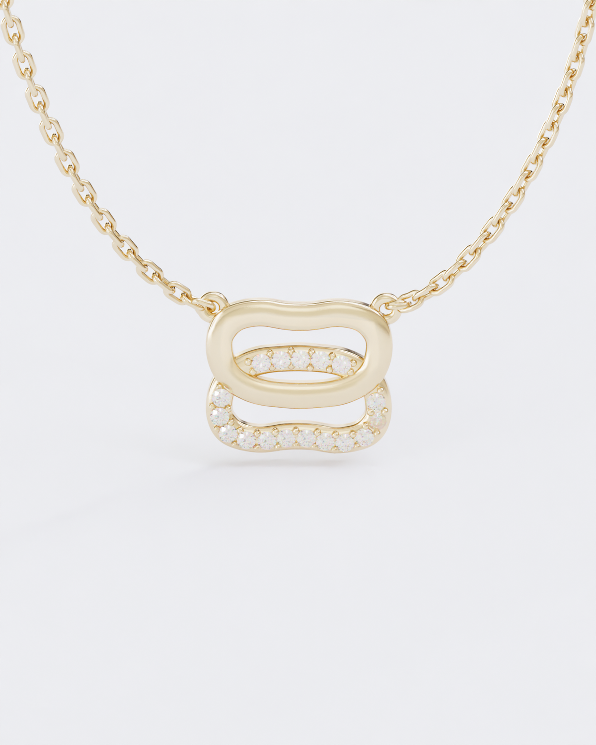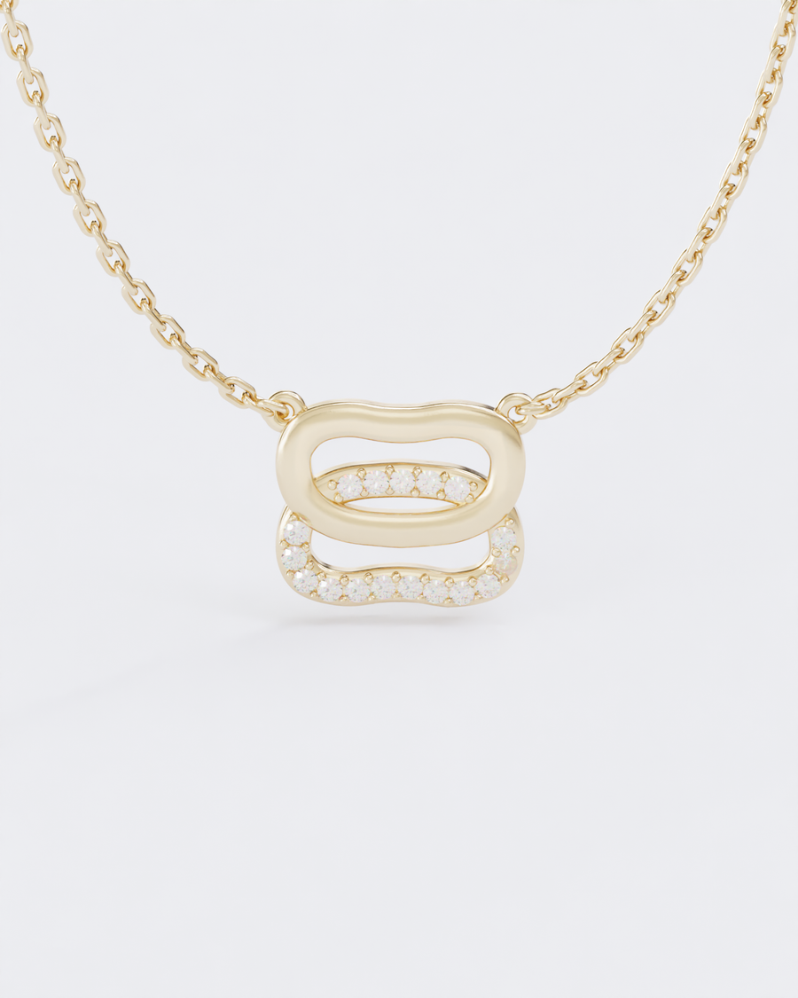 Колекція виконана у жовтому, білому та рожевому золоті, оздобленому діамантовим паве та напівпаве, які створюють витончену гру світла й блиску діамантів. У лінійці представлені підвіски, пусети, каблучки та браслети, розроблені для ідеального поєднання у багатошарових композиціях.