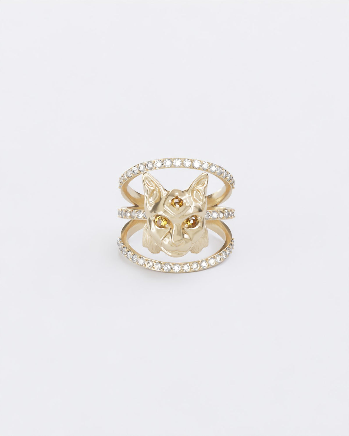 Золота каблучка Рись з діамантамиПід замовлення. Наші ювеліри виготовлять цю прикрасу для вас протягом 3-4 тижнів