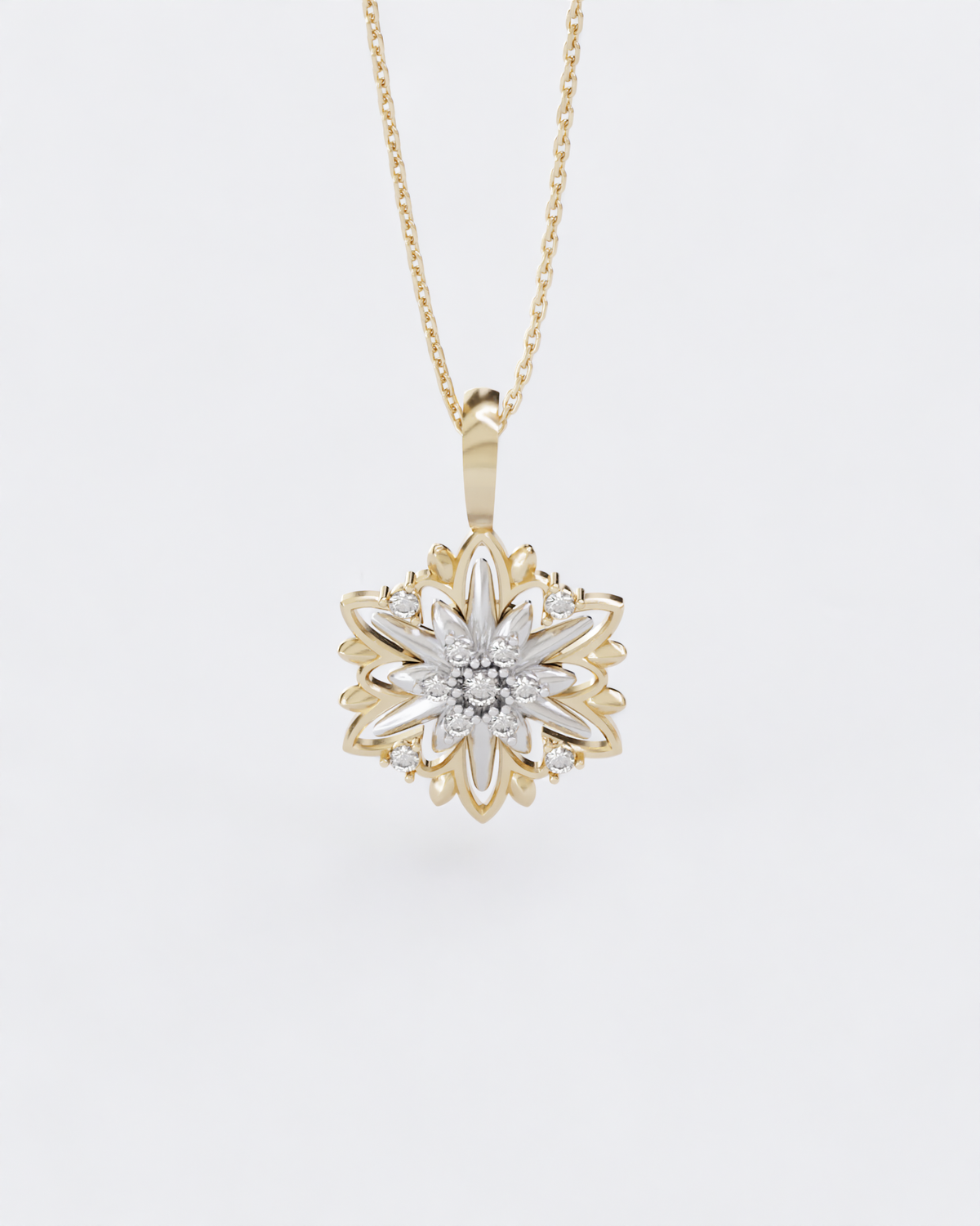 Ювелірна колекція "Едельвейс" - це прикраси, присвячені легендарній квітці Едельвейс, що росте на вершинах українських Карпат. Ця квітка, оповита легендами та магічною символікою, вважається символом мужності, відваги та справжньої любові. Занесена до Червоної книги, вона зазнає загрози зникнення та потребує уваги та обережного ставлення.