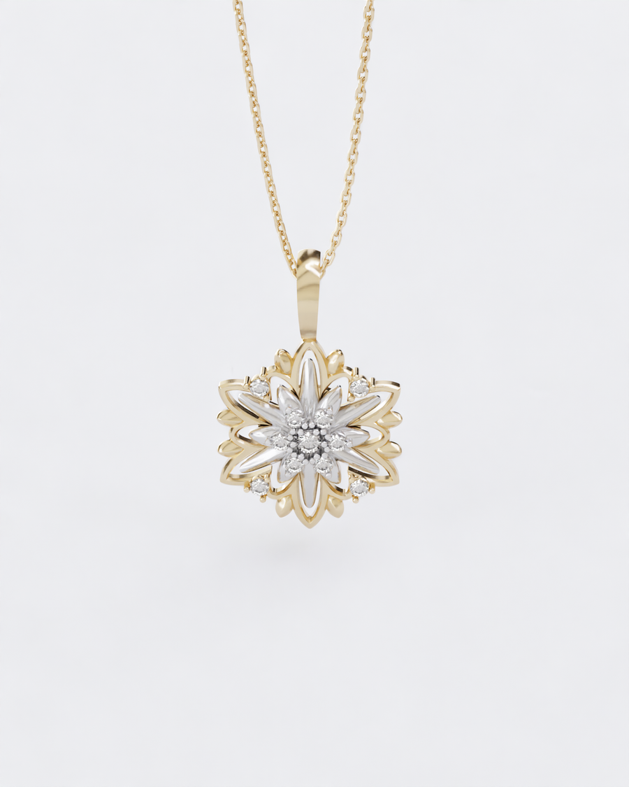 Золота Підвіска Едельвейс з діамантамиВідправка поштою 1-3 робочі дні, або самовивіз з наших бутиків у Києві та Львові (після бронювання на сайті або за телефоном)