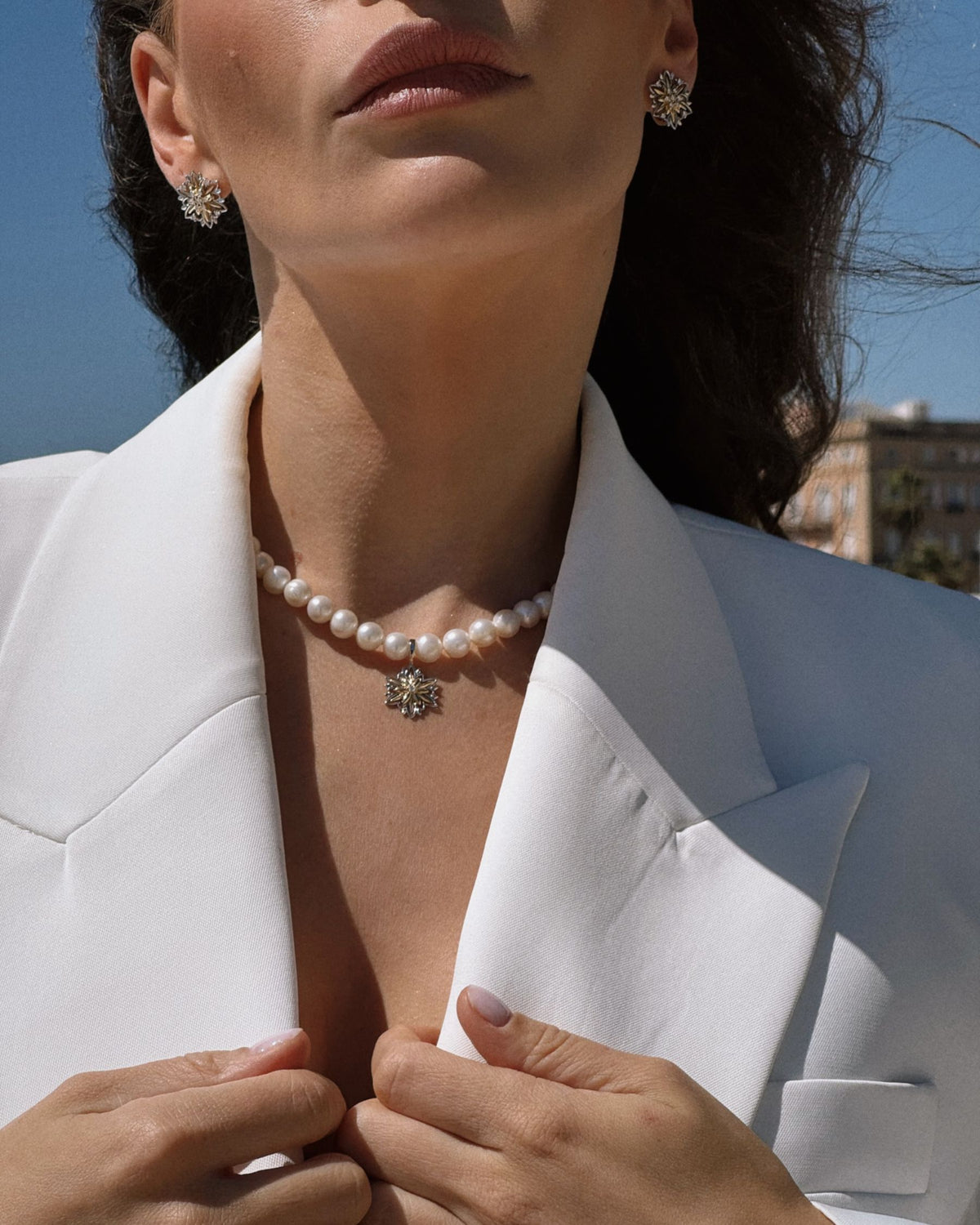 Кольє Едельвейс з діамантами та перлами