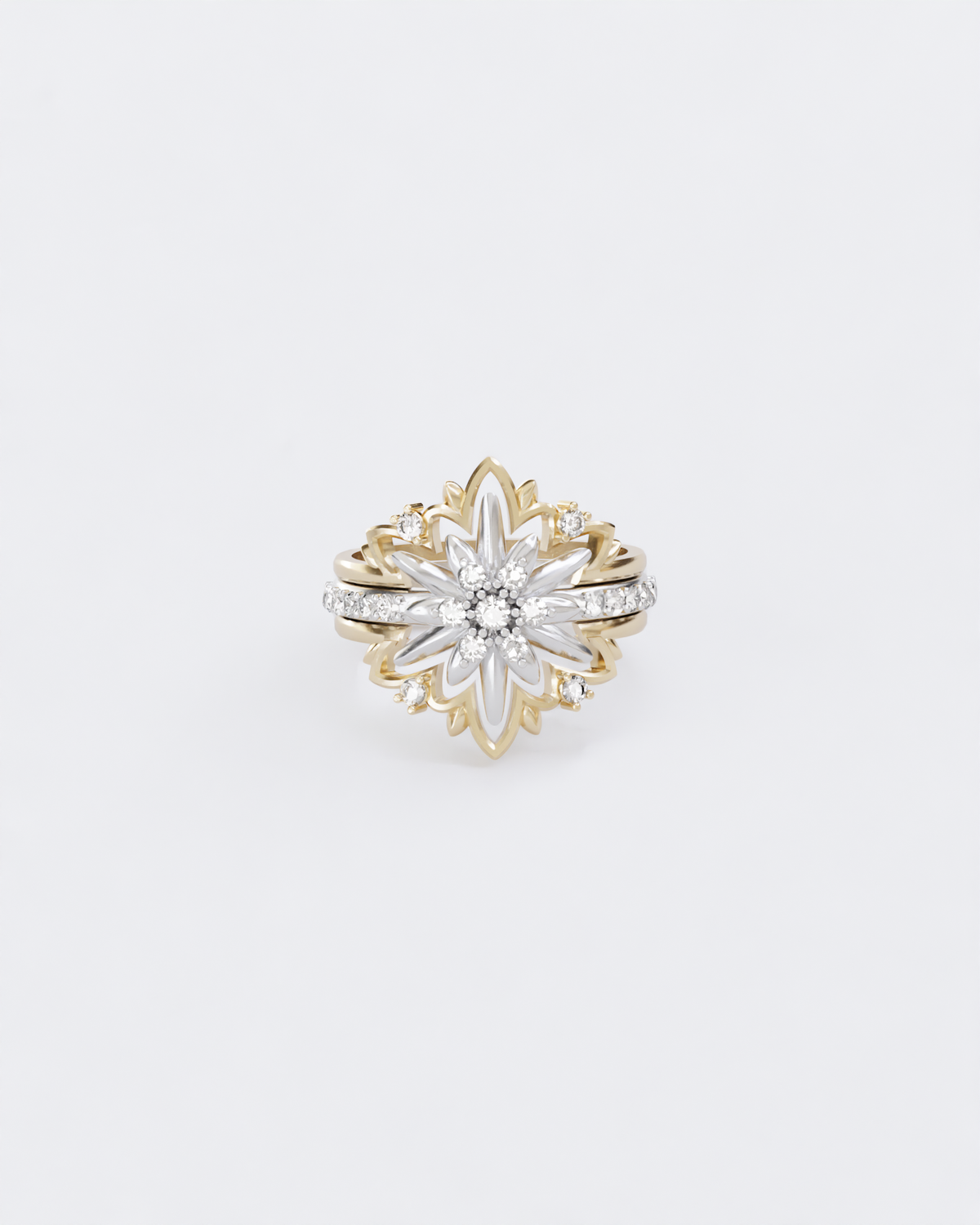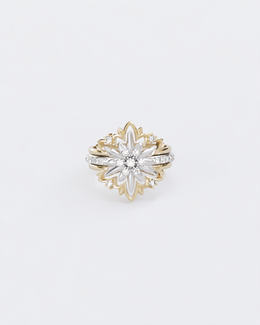 Золота Каблучка Едельвейс з діамантами